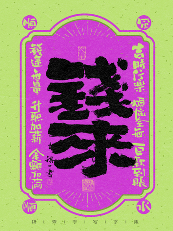 白墨研字|黄陵野鹤民国银票风系列好运内容书法创作