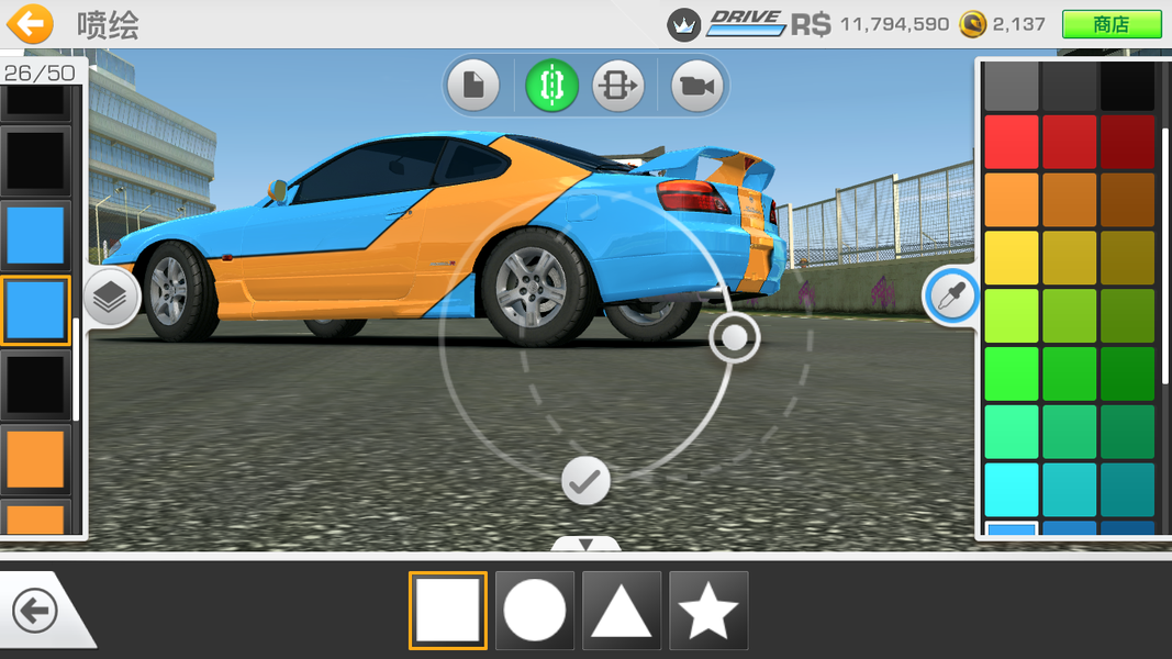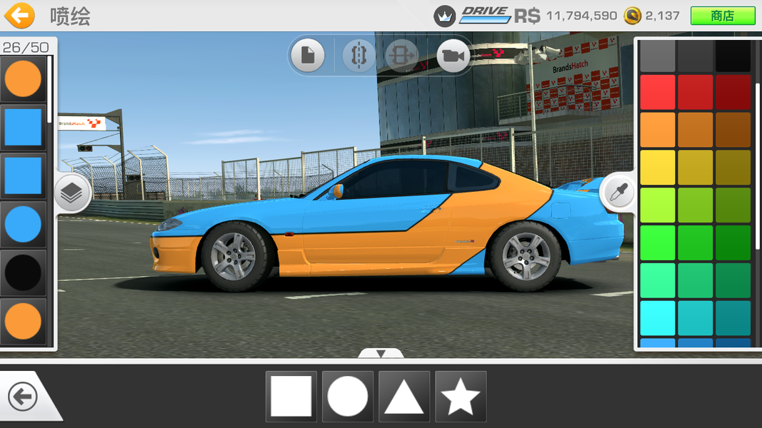 真实赛车3 车体拉花,买不起系统涂装,只好用基本图形来叠啦。