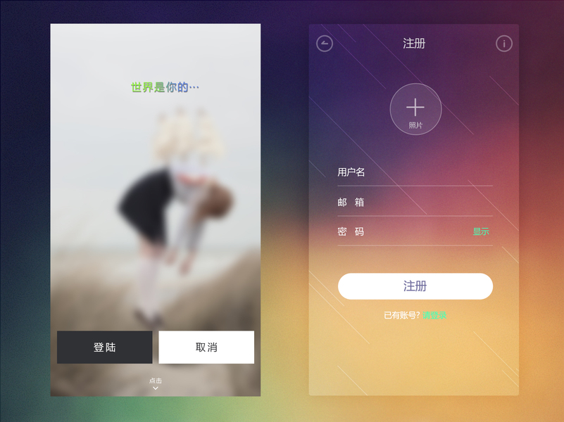 透明磨砂质感APP界面