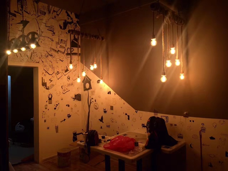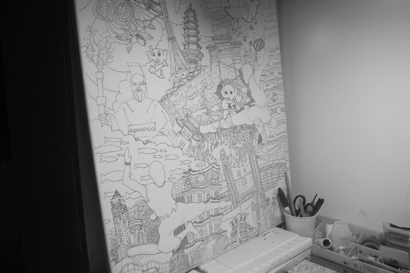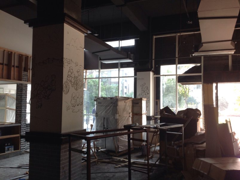 成都烧烤店主题黑白墙绘完成,带你回味老味道!
