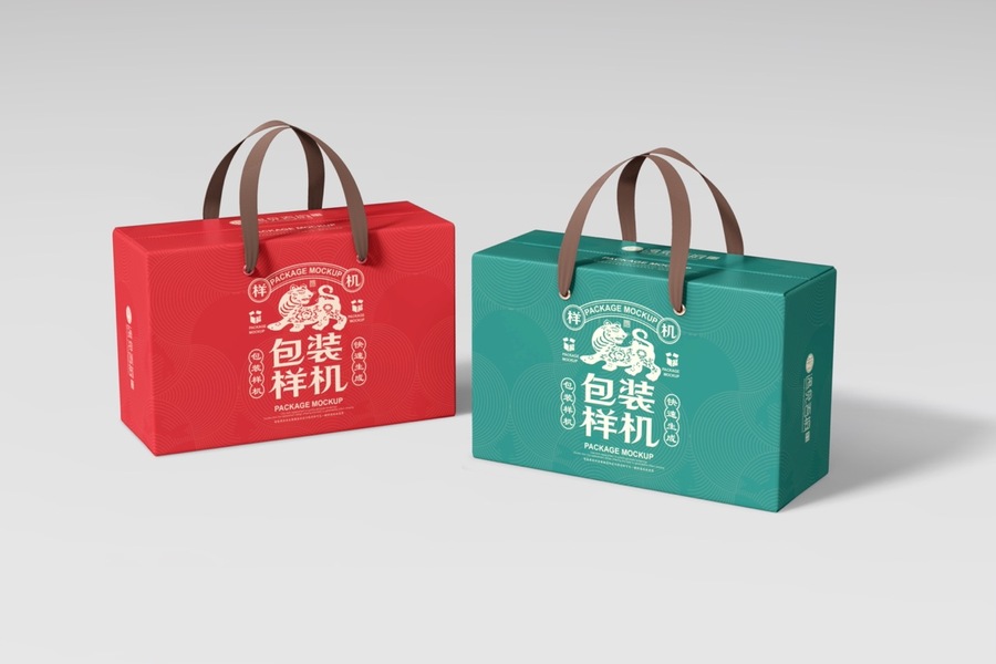 丝带手提食品礼盒样机食品包装盒样机礼盒大礼包样机