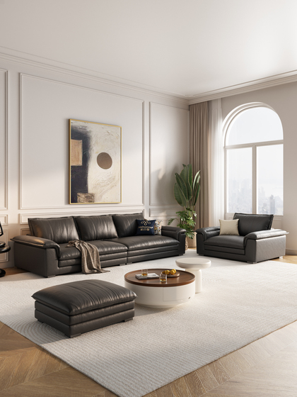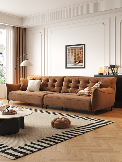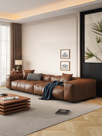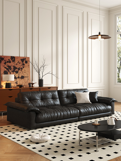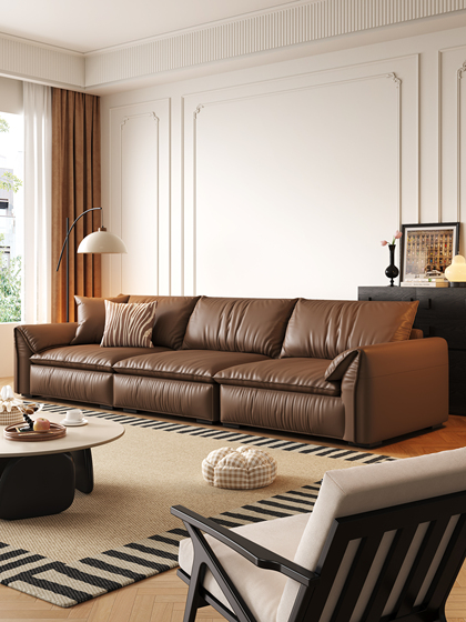 帆船真皮沙发头层牛皮法式复古客厅加宽坐深羽绒沙发