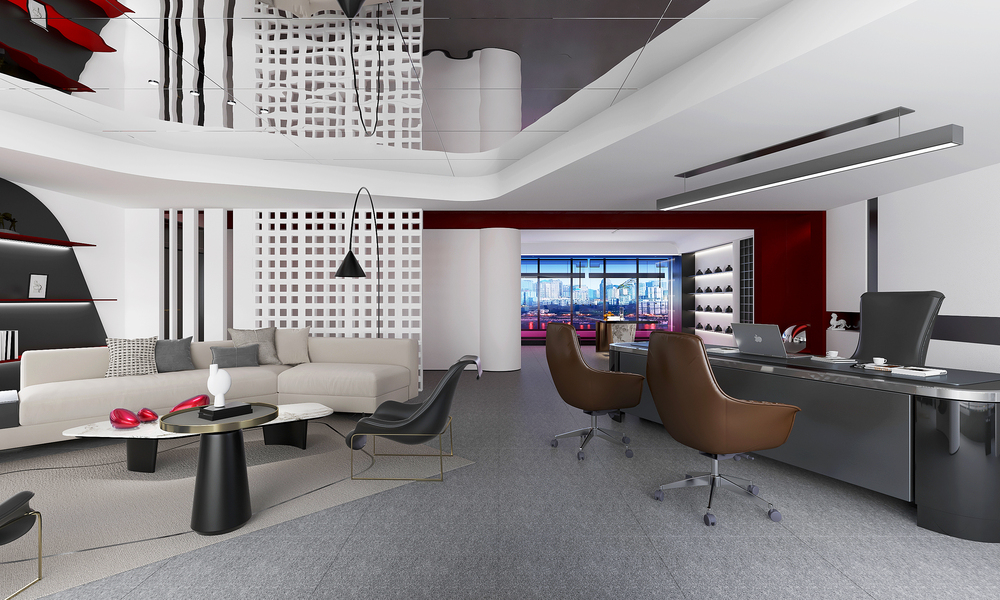 化妆品办公空间设计//红黑色调CEO办公空间