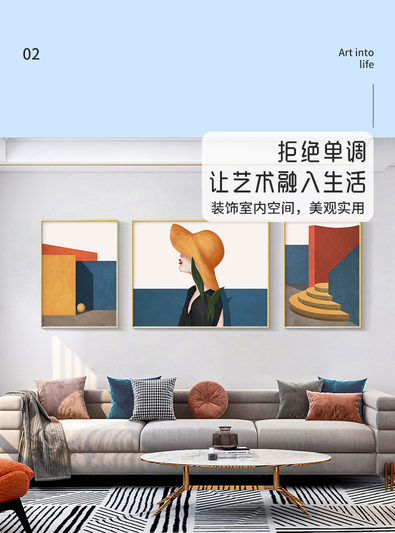 北欧客厅装饰画现代简约卧室背景墙挂画