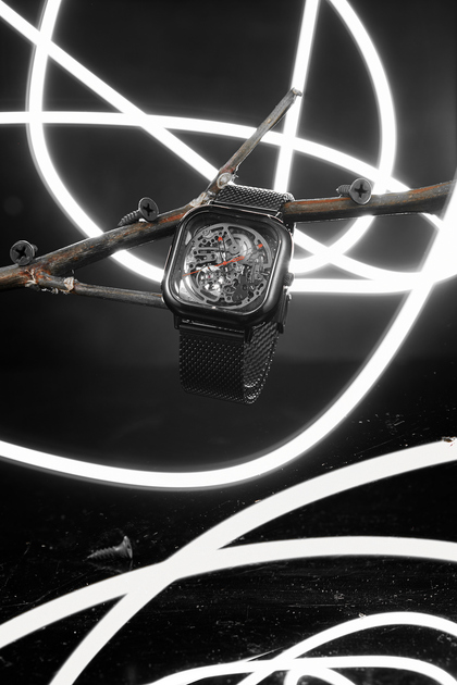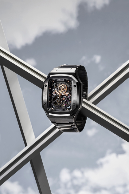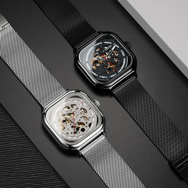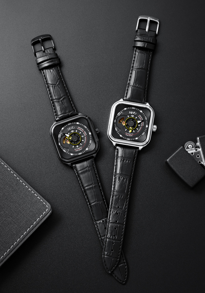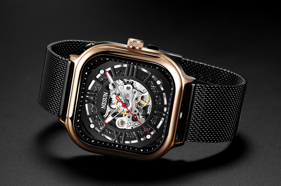 手表摄影/NESUN尼尚方形男士机械表自动镂空防水夜光表