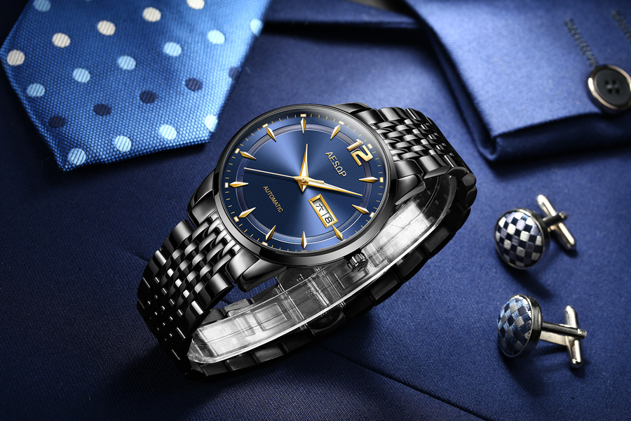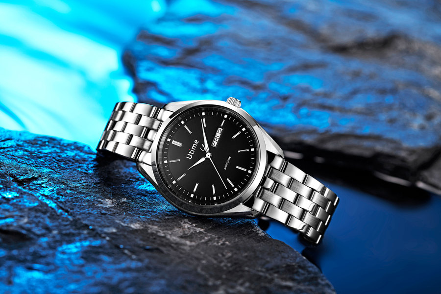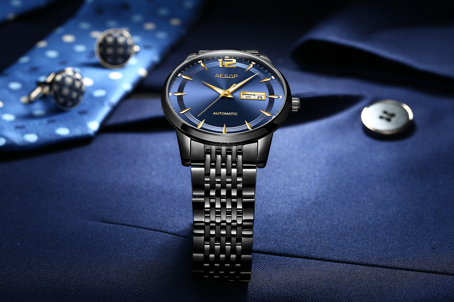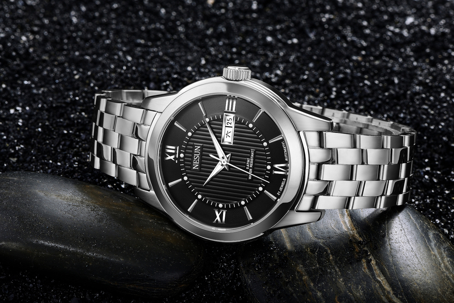 手表摄影/NESUN尼尚精钢防水夜光双日历男士商务手表