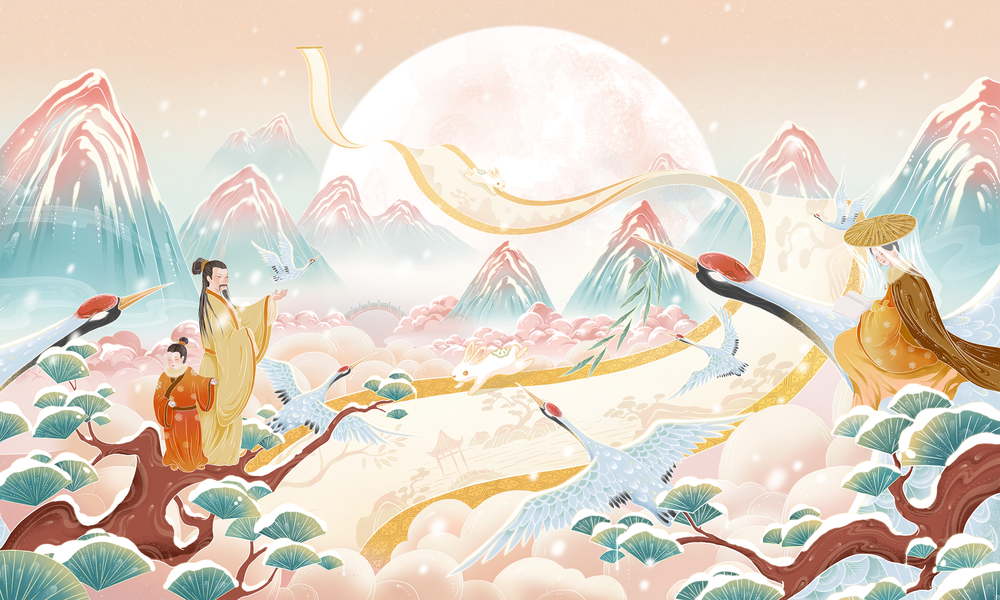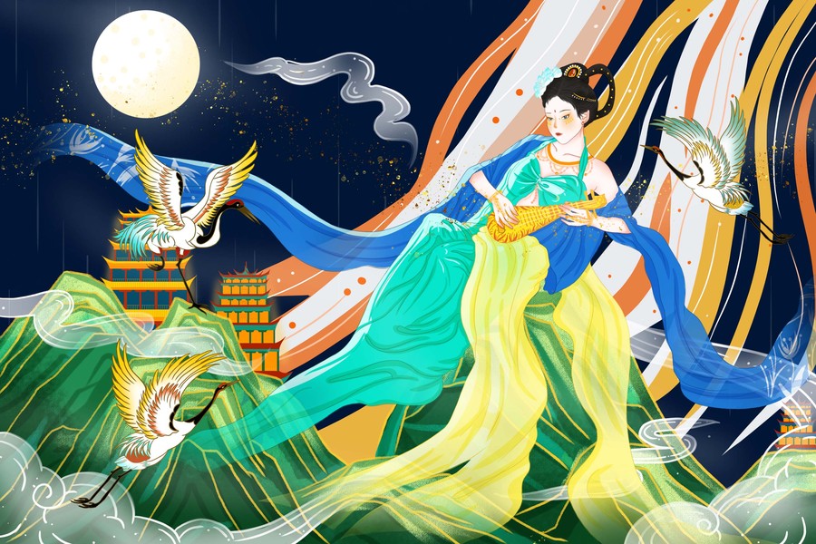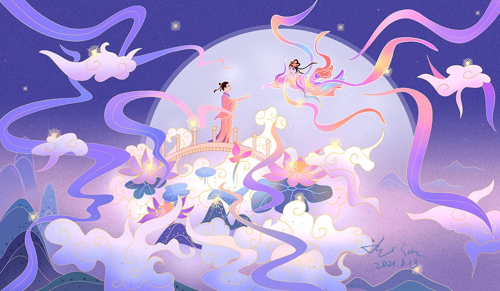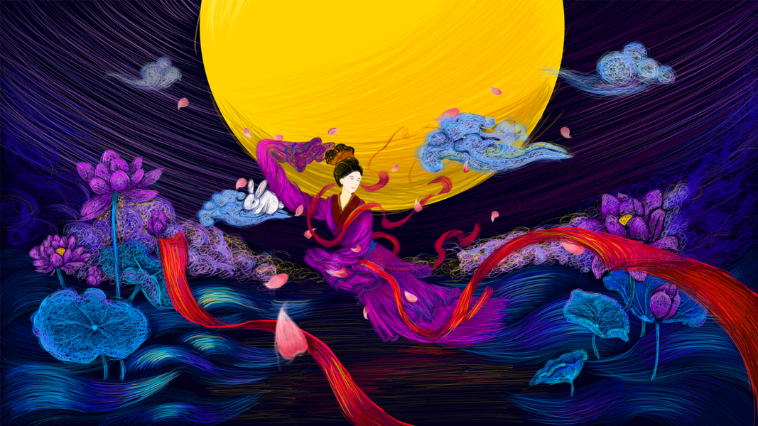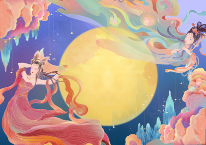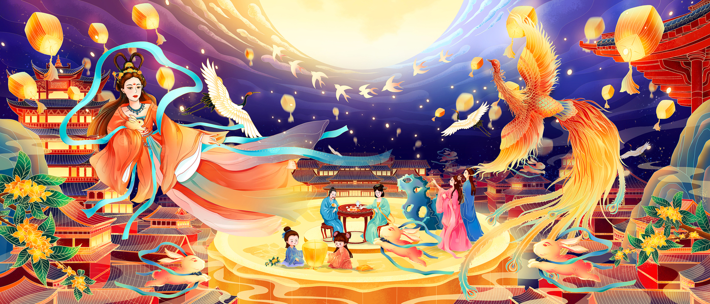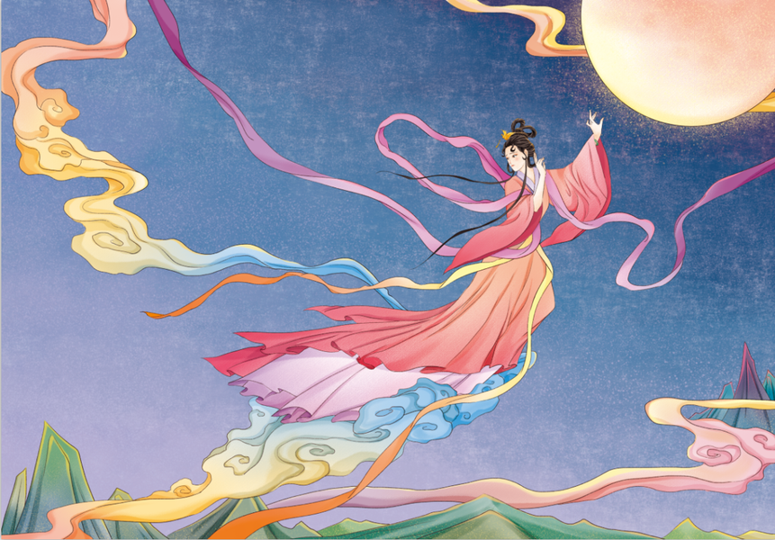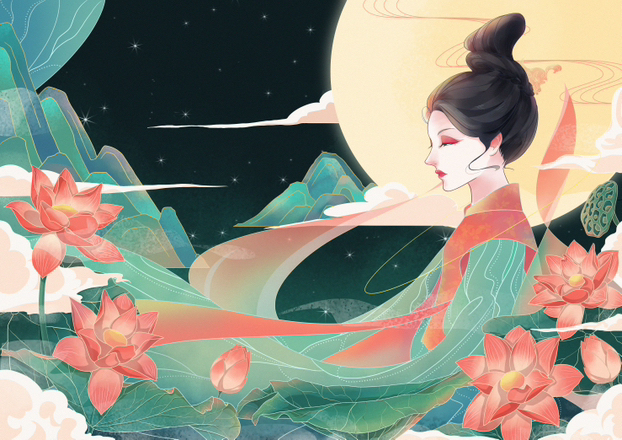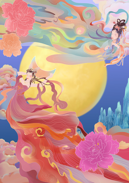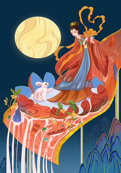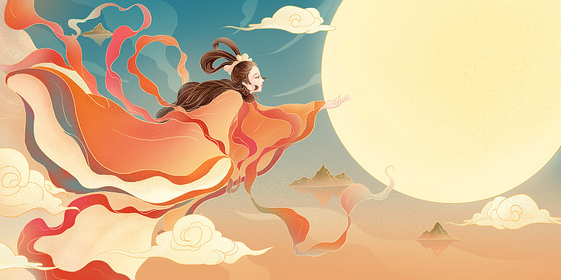 国风嫦娥奔月中秋插画