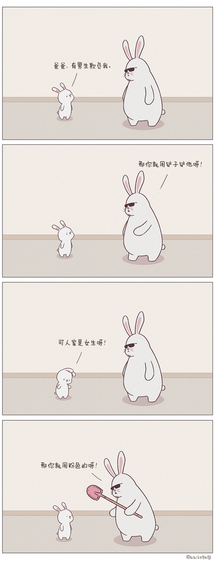 “爸爸,有男生欺负我。”“那你就用铲子铲他呀!”
