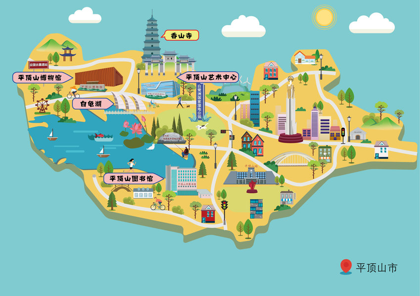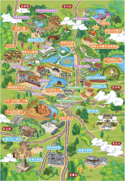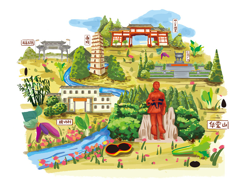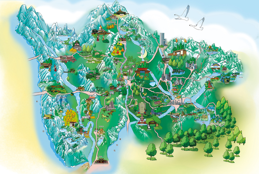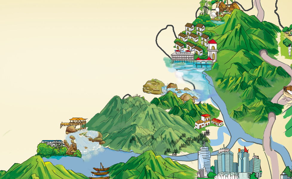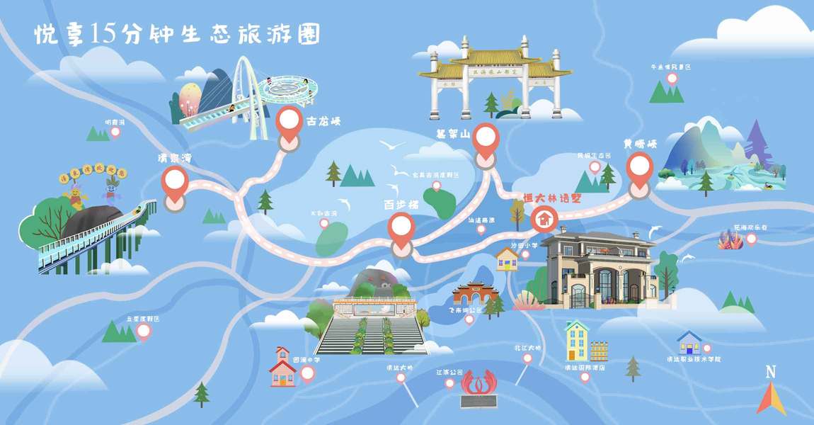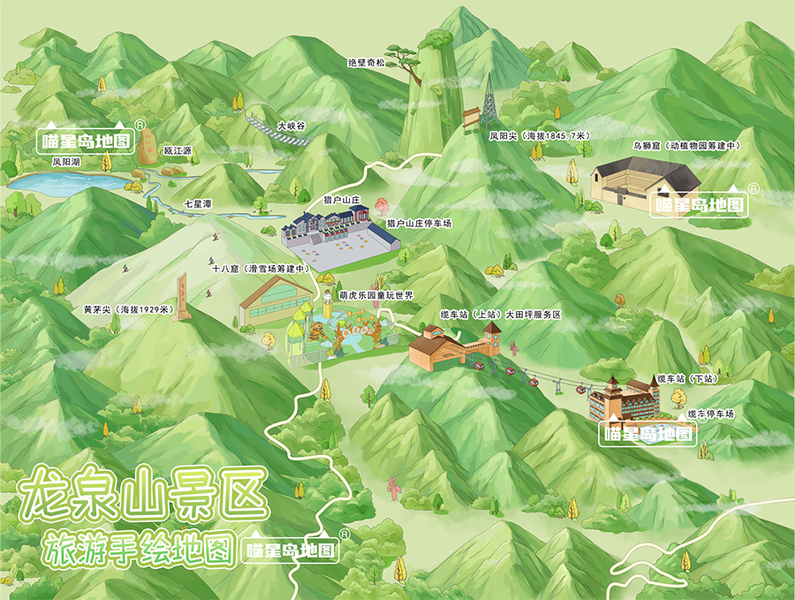 出品:龙泉山景区旅游手绘地图 景区手绘导览图 喵星岛