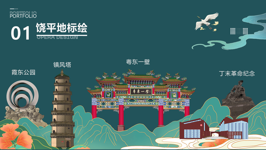 cdr绘制图像 饶平县 黄冈 地标建筑 插画图像大图