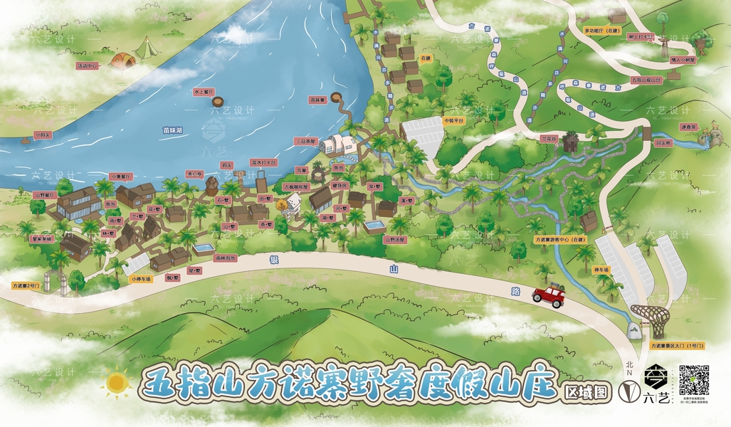 五指山方诺寨野奢度假山庄区域导览图酒店手绘地图