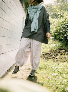 女士棉麻针织袖超宽松文艺气质手作套头长袖t恤旅游原创服装设计
