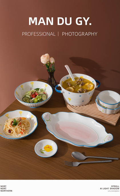 碗碟套装餐具组合 陶瓷碗盘家用面碗汤碗饭碗|产品摄影