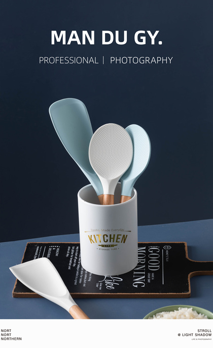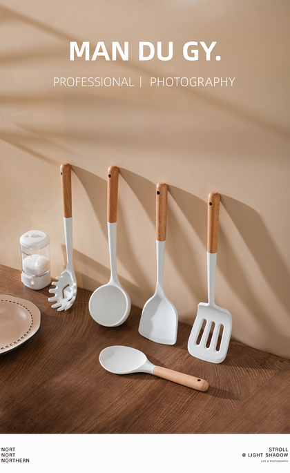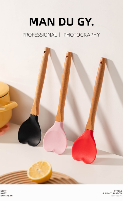 ins风|硅胶铲子 耐高温厨具套装汤勺家用漏勺|产品摄影