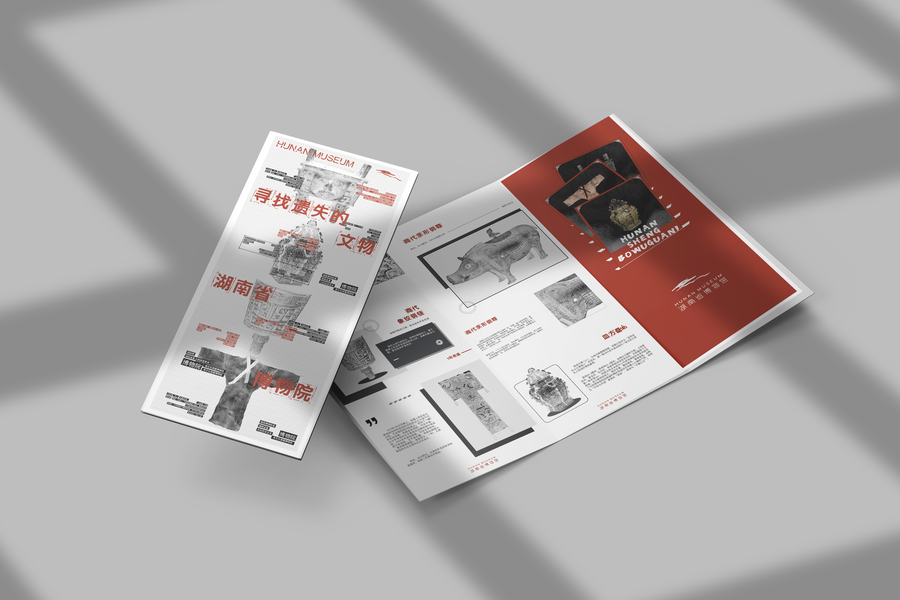 以湖南博物馆为基础,为小朋友练习的三折页