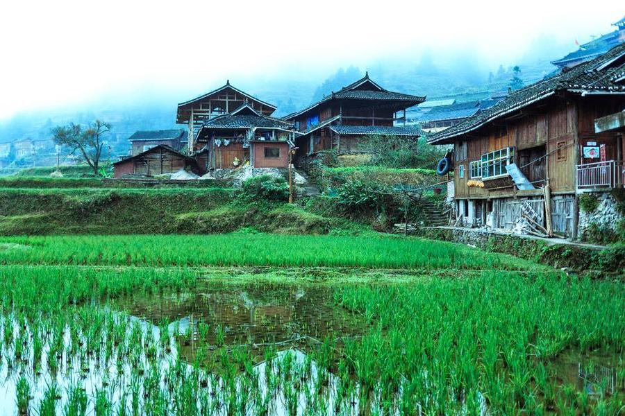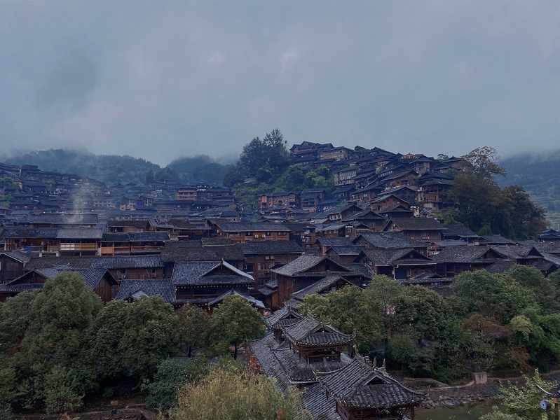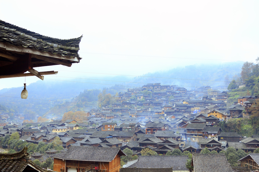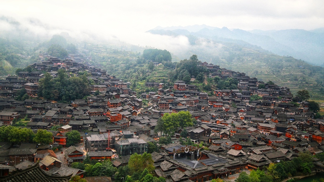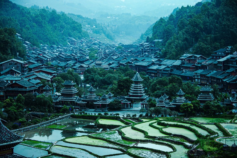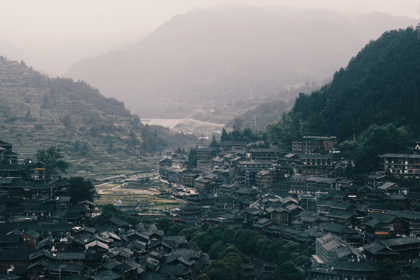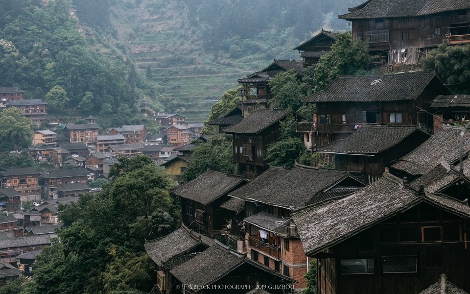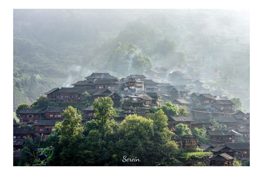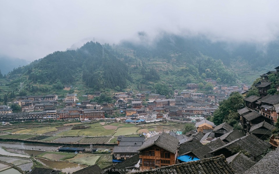 美丽的黄果树瀑布与雨雾中的千户苗寨