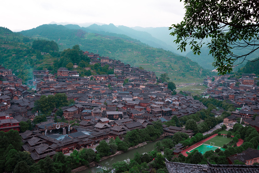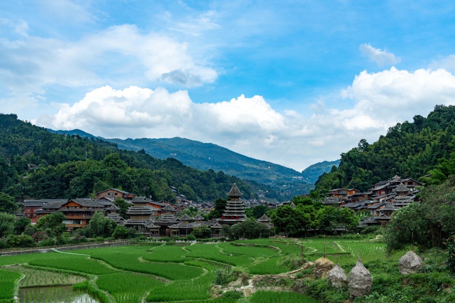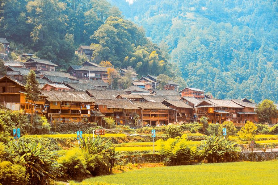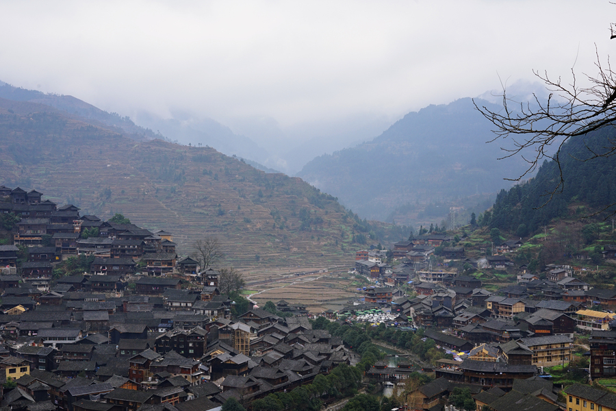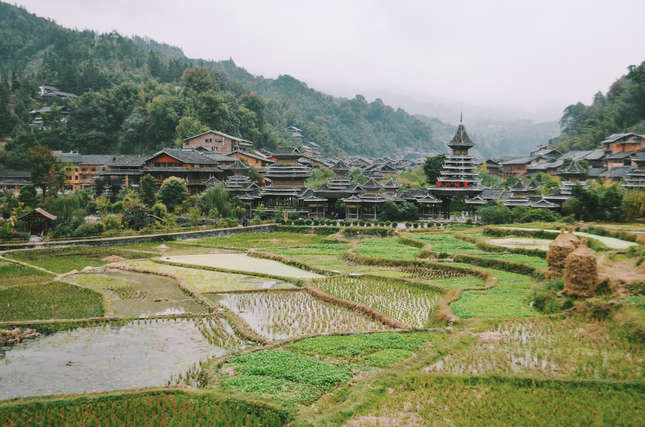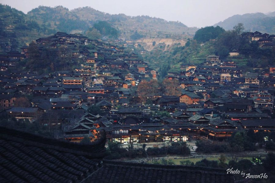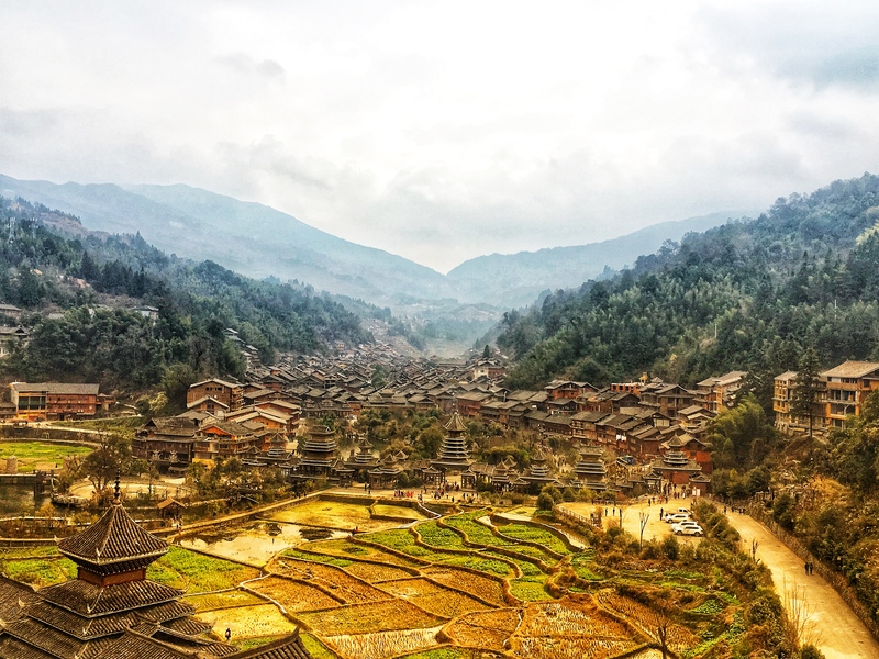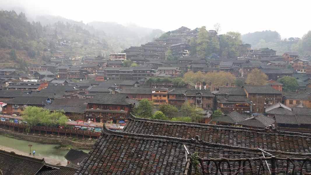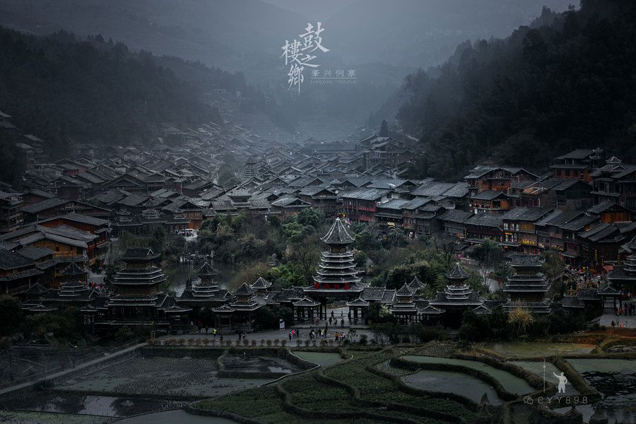 美丽的黄果树瀑布与雨雾中的千户苗寨