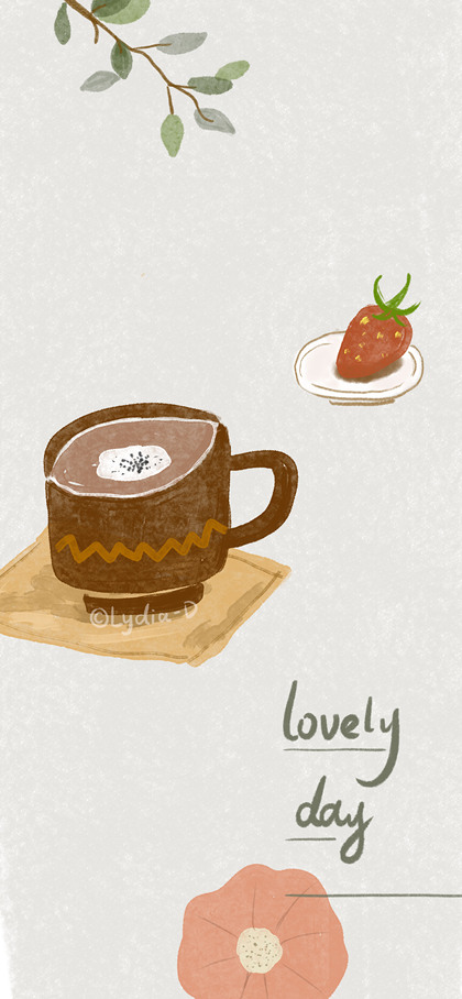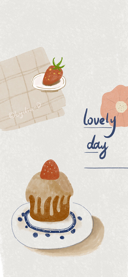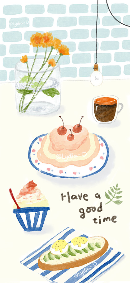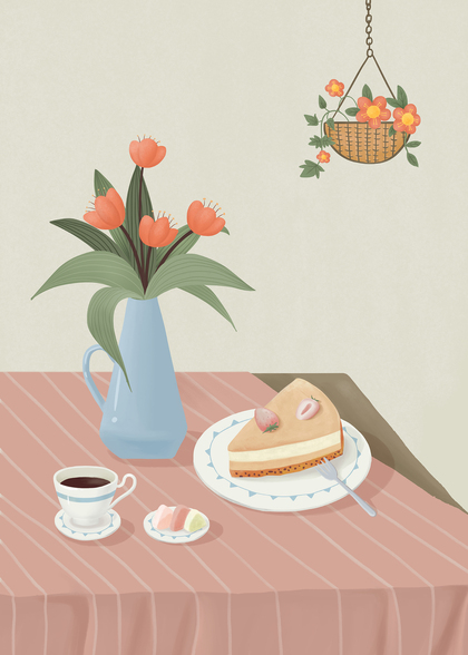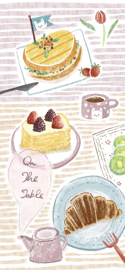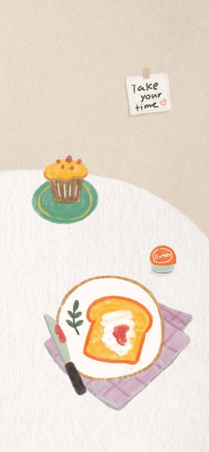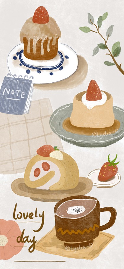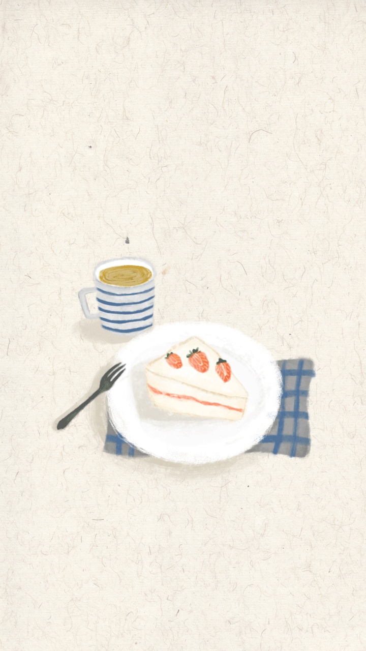 手绘简约壁纸-一杯一碟一点甜-食物插画