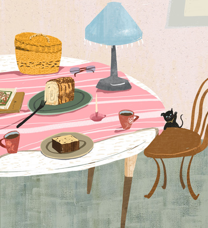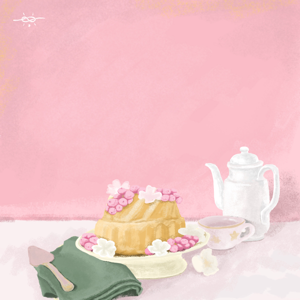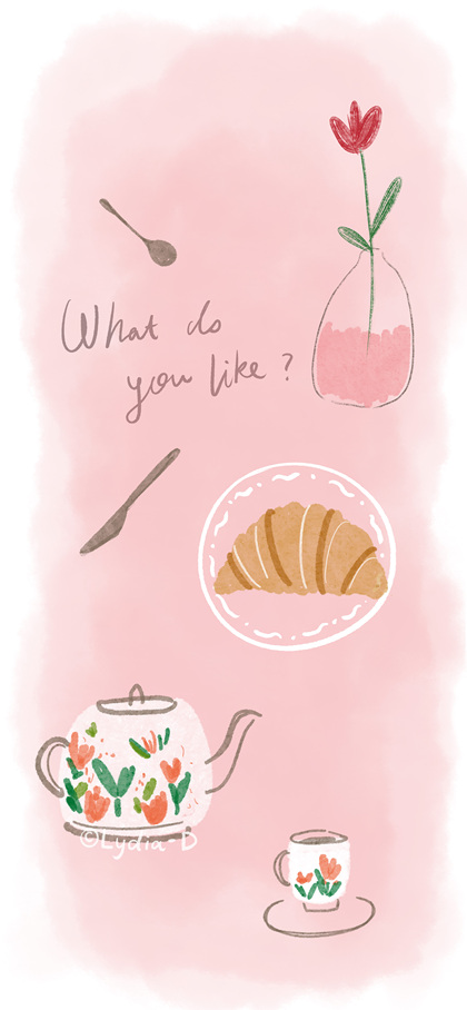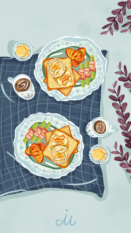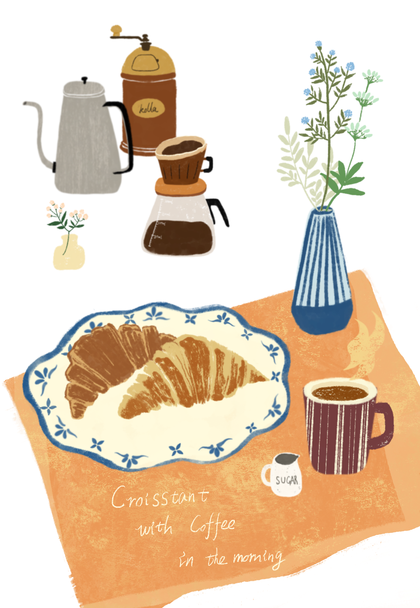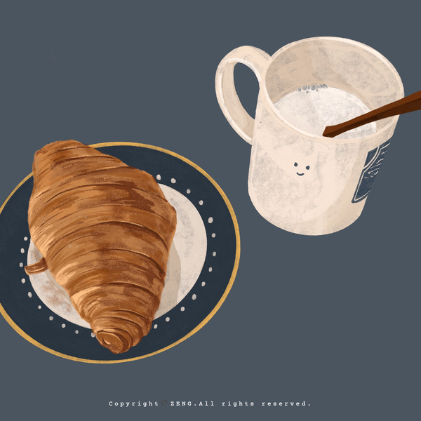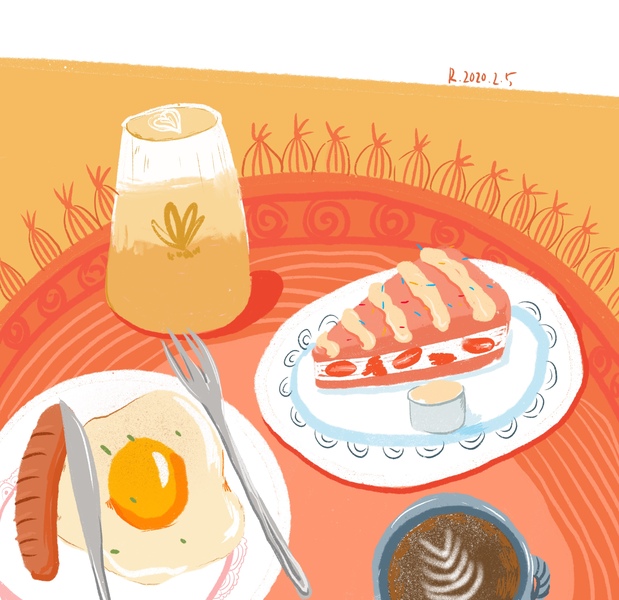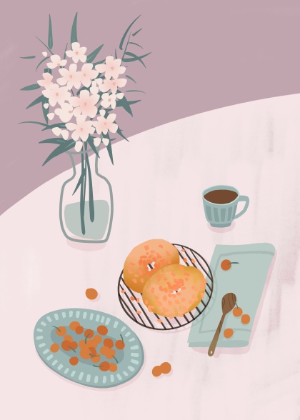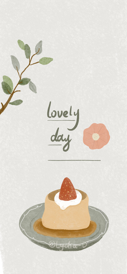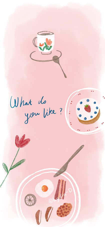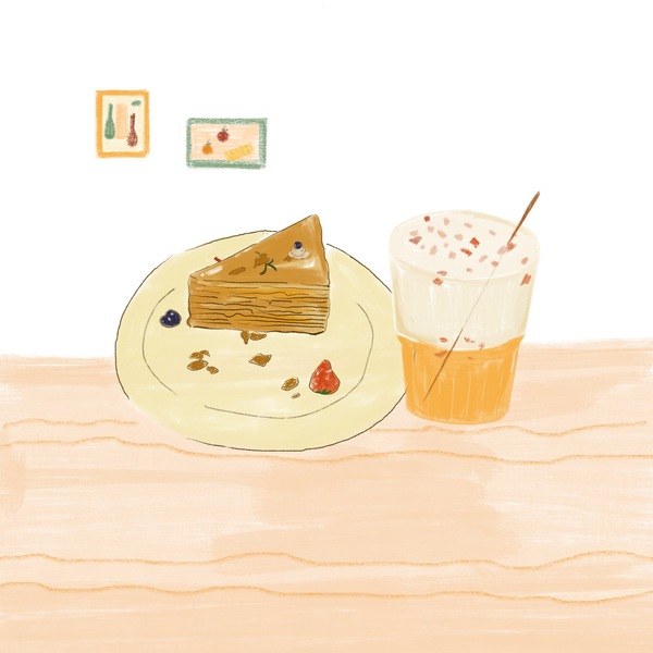 手绘简约壁纸-一杯一碟一点甜-食物插画