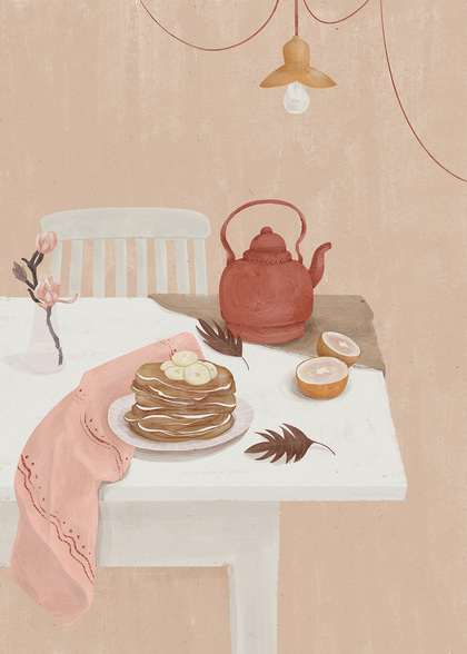 手绘简约壁纸-把眼睛叫醒-食物插画