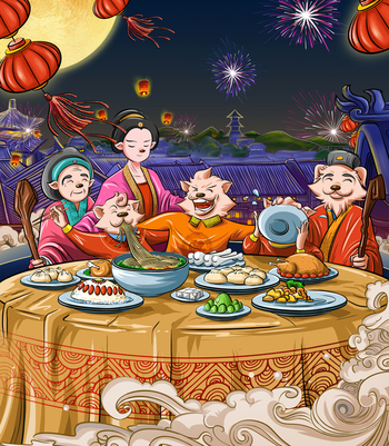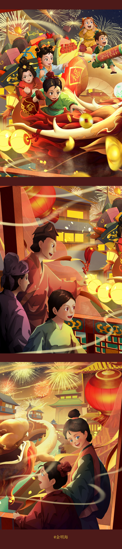 国风氛围感插画 | 2024龙年贺图 · 金龙贺新年
