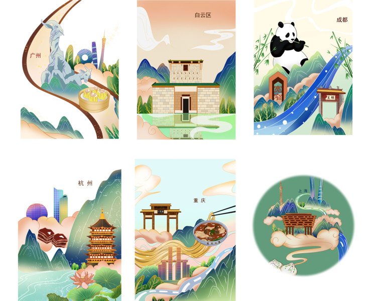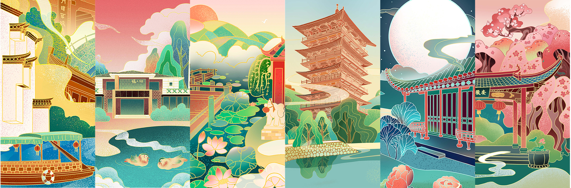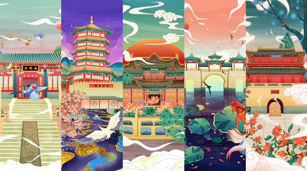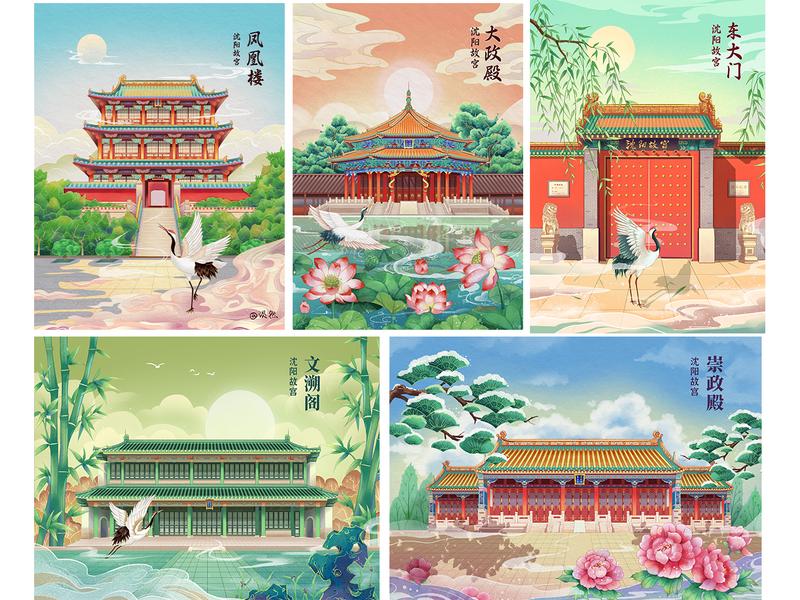 文创插画 | 沈阳故宫古建筑合集(带场景)