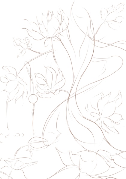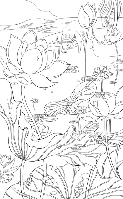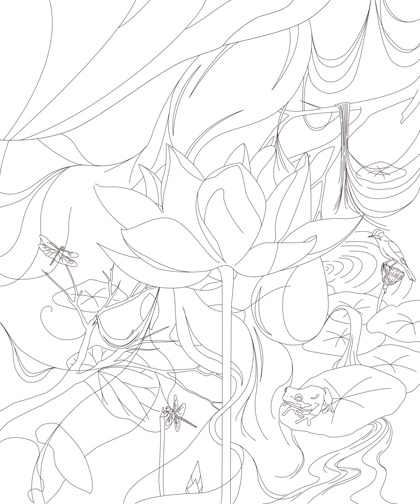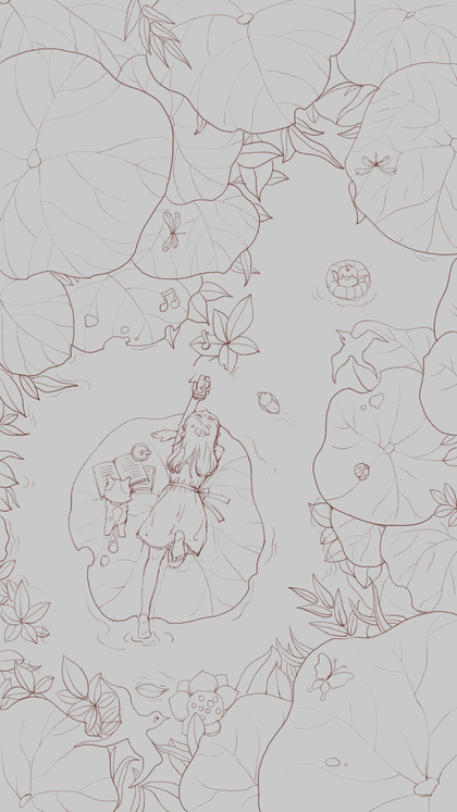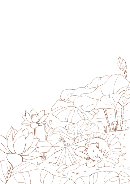 绘画过程,池塘边熟睡中的娃娃,原创插画