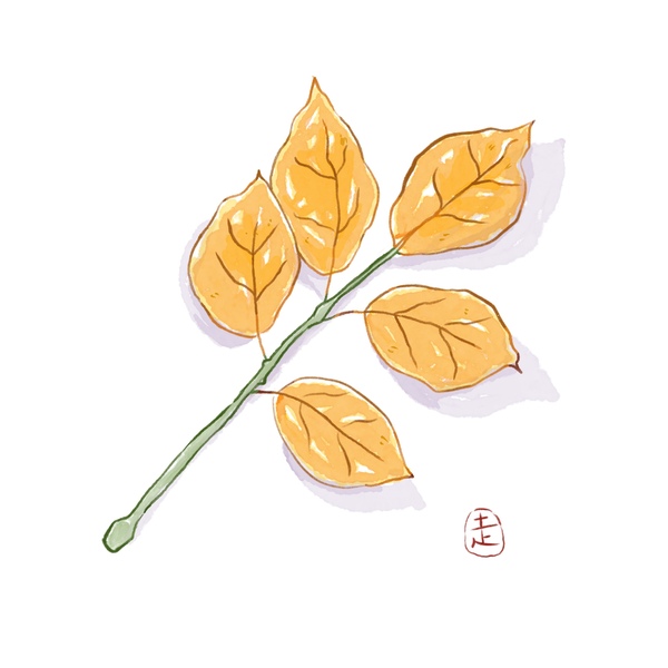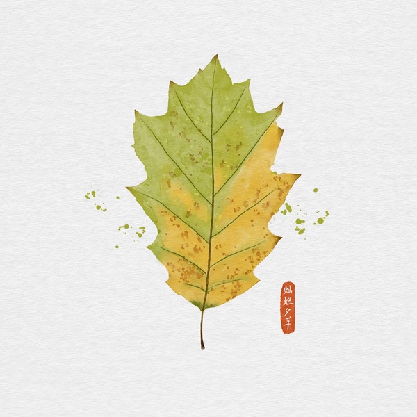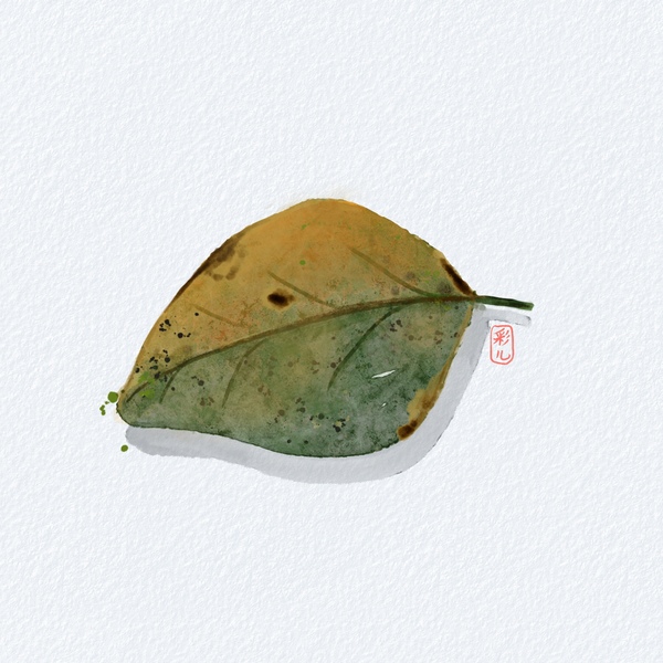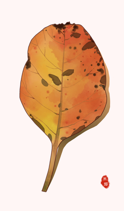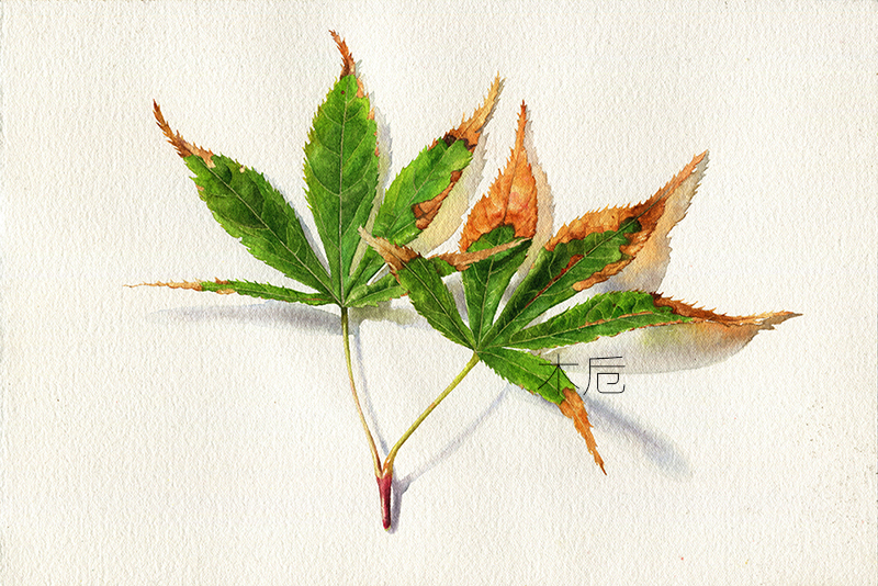 [练习图] 水彩 秋叶与干枯的花朵 | 九子酱