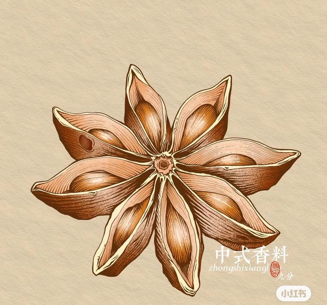 铜版画风格【中式香料|茴香|草果|香叶|八角|豆蔻】