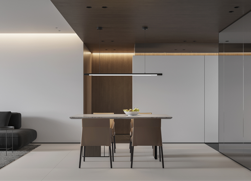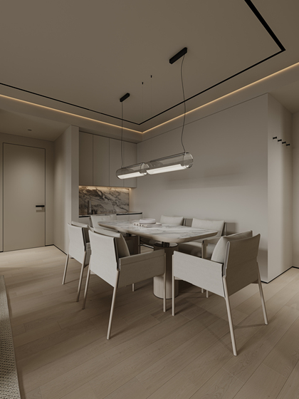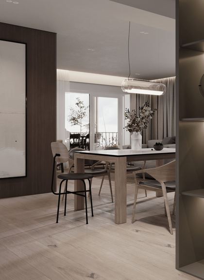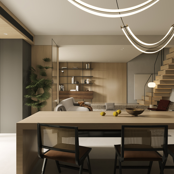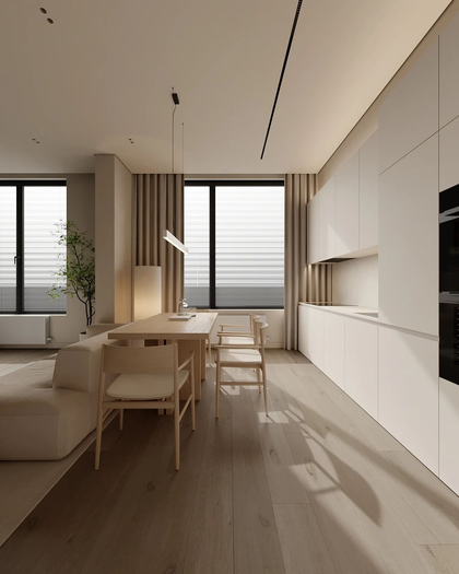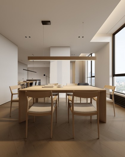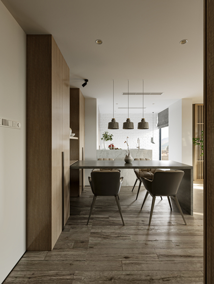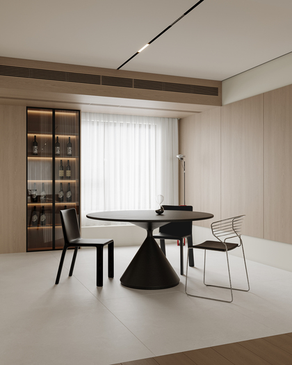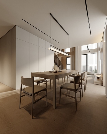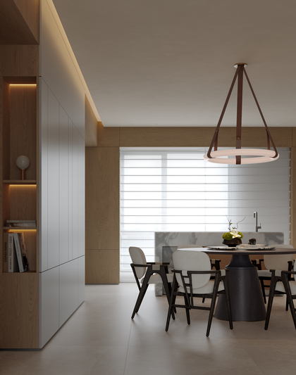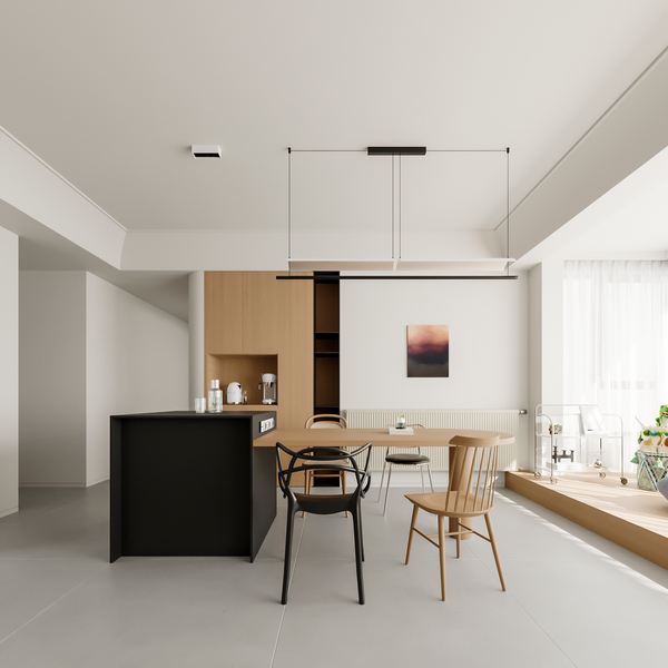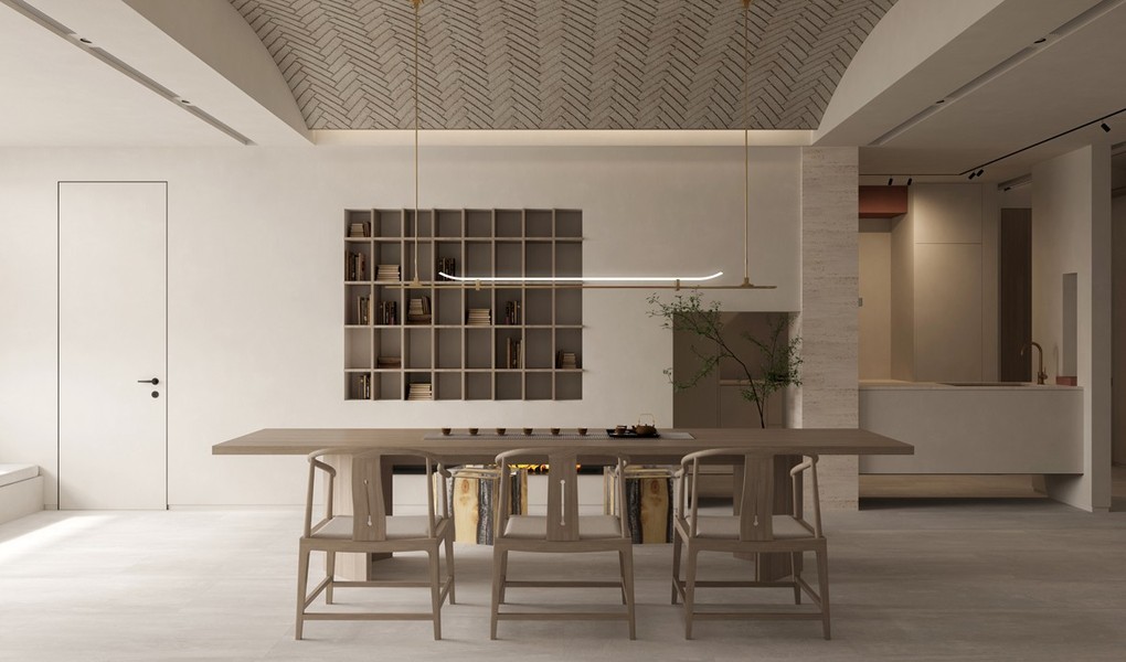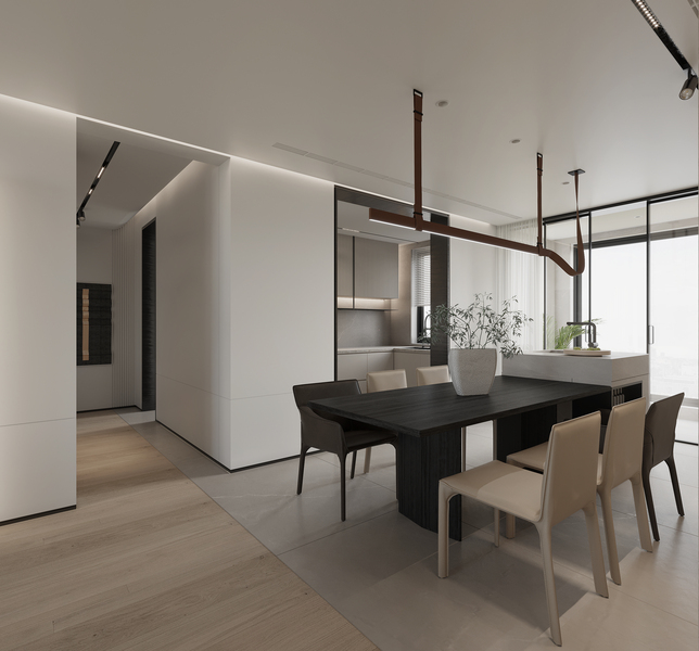 低饱和度的配色风格再带一点绿植、深色家具加以点缀