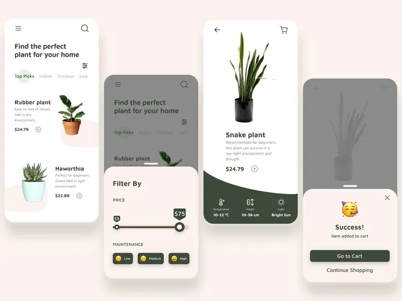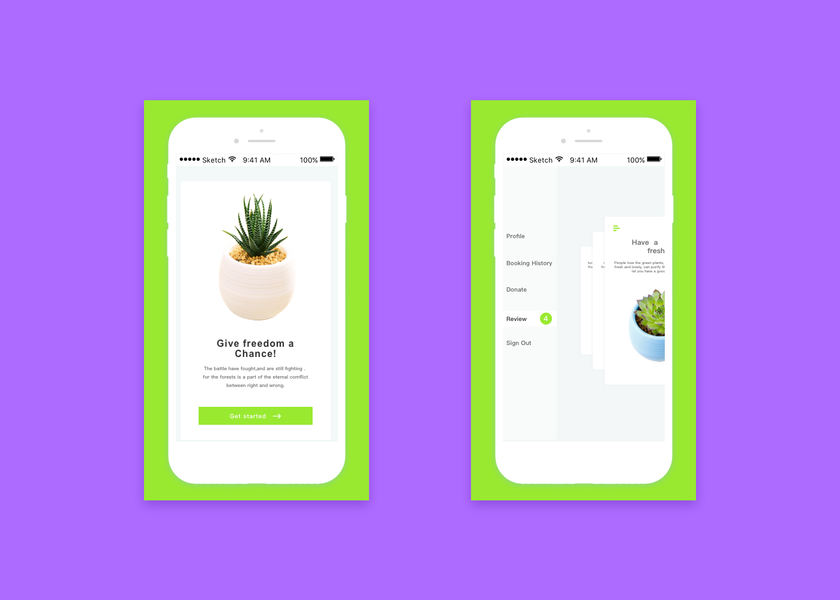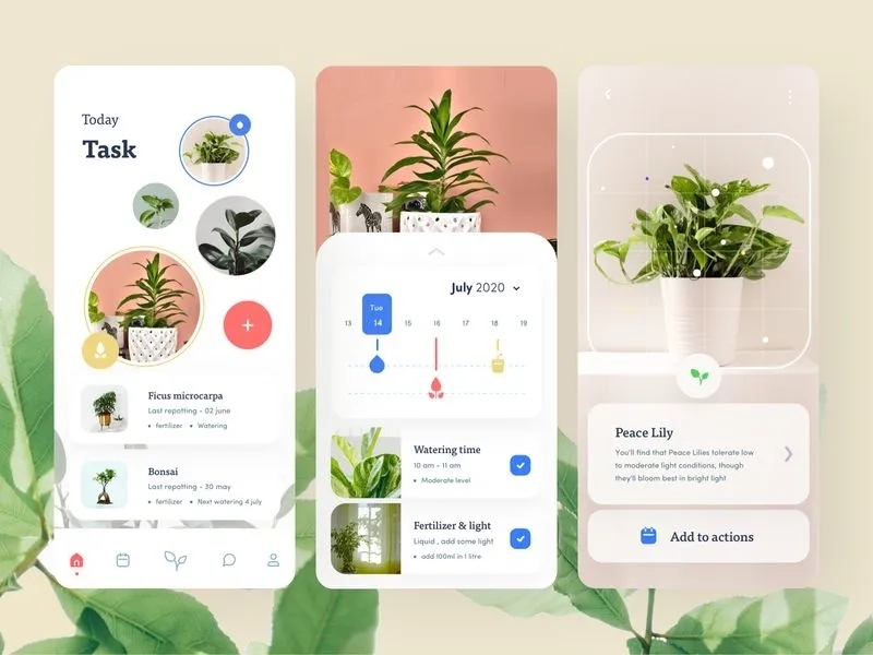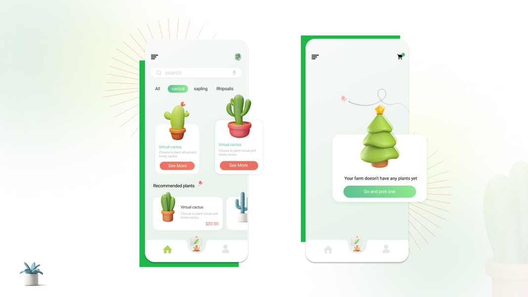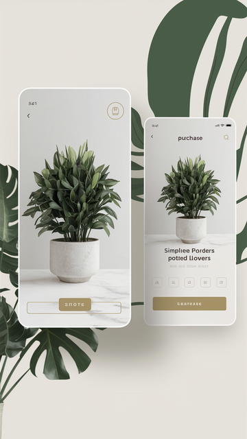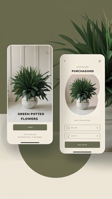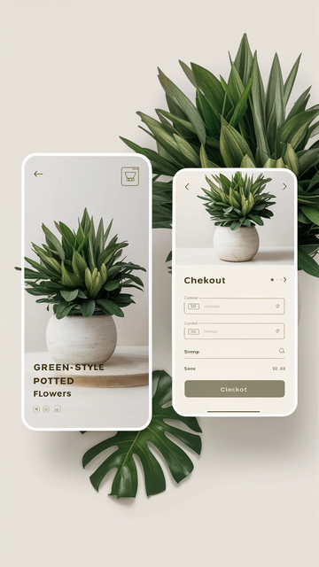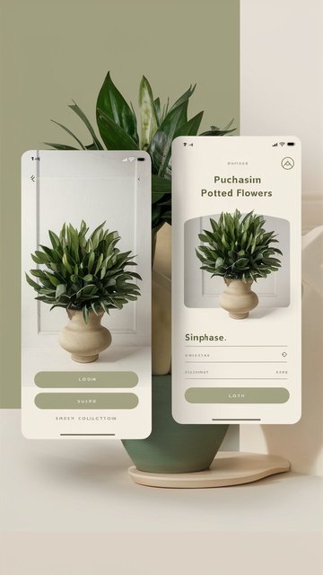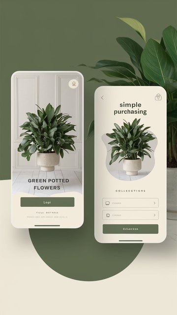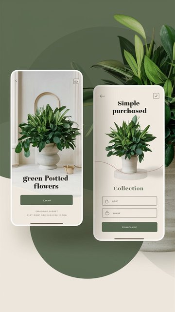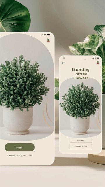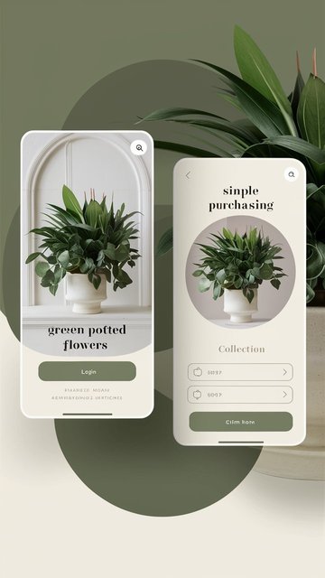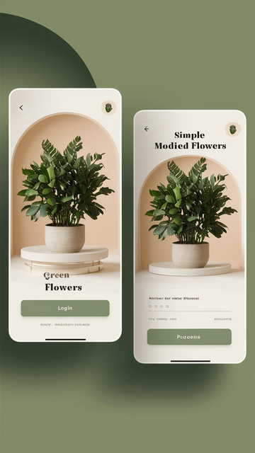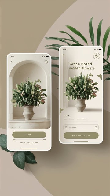 用AI绘画创作的关于绿植的移动端app登录注册页
