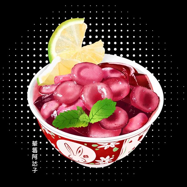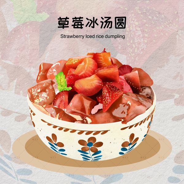 ipad手绘插画 | 草莓冰汤圆 | 夏日糖水甜品
