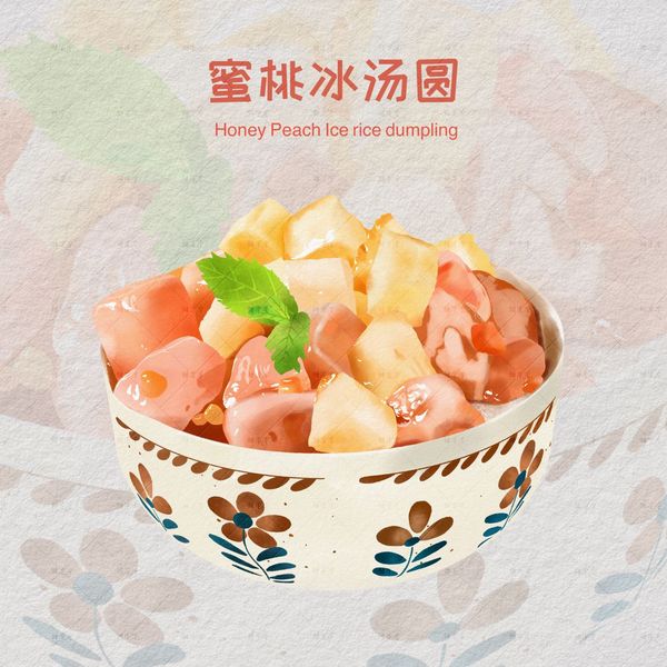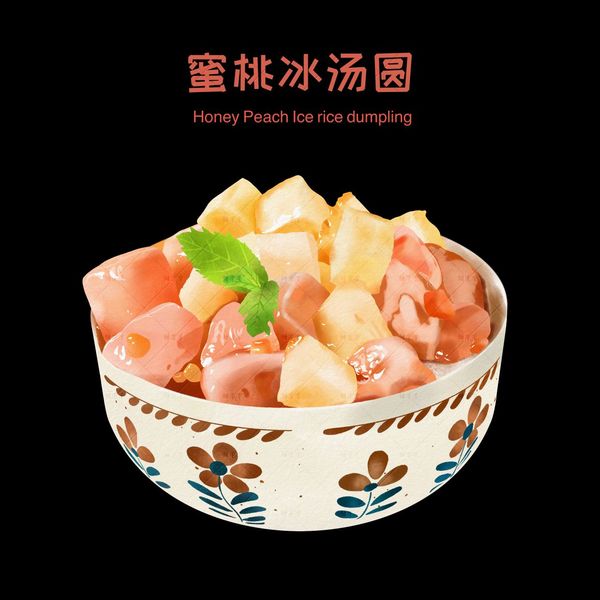 ipad手绘插画 | 蜜桃冰汤圆 | 夏日糖水甜品