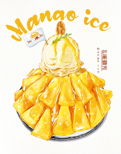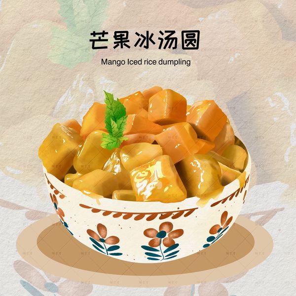 ipad手绘插画 | 芒果冰汤圆 | 夏日糖水甜品