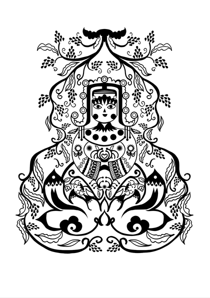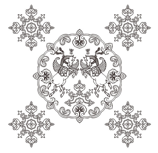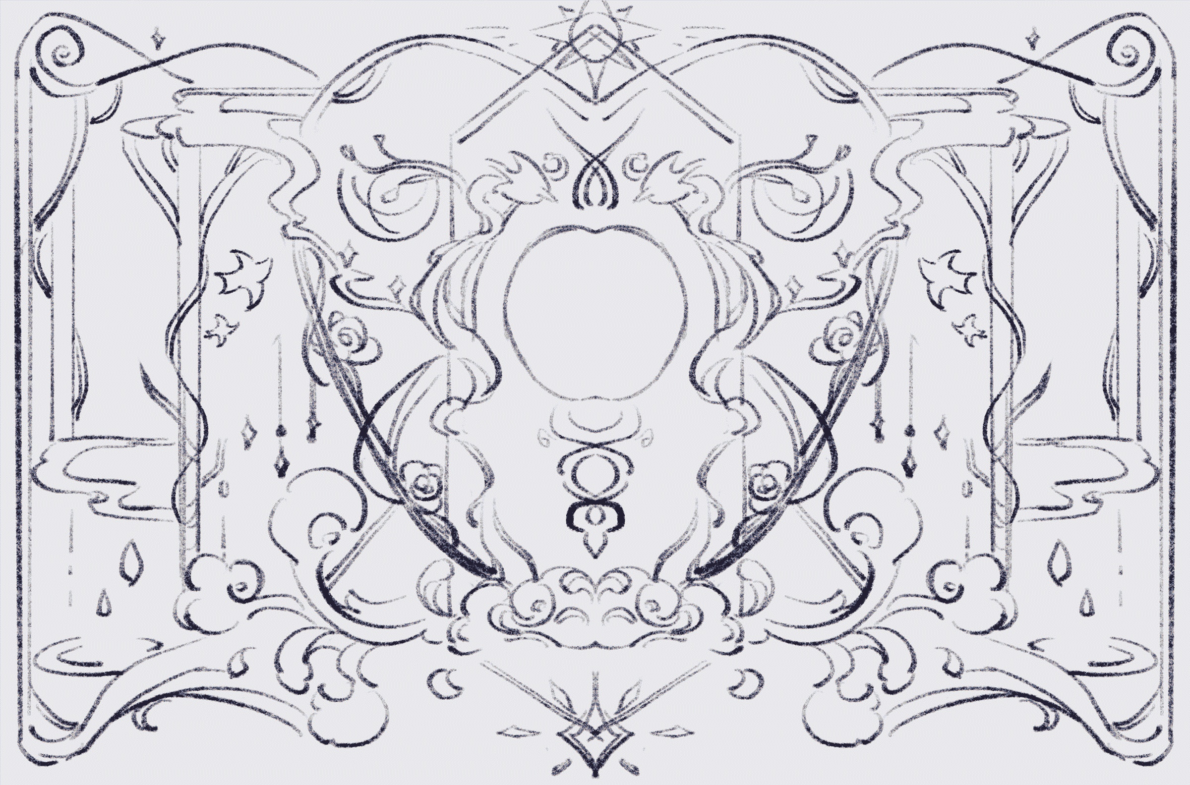 花朵线型白描图服装高定蕾丝礼服图案设计