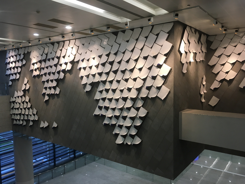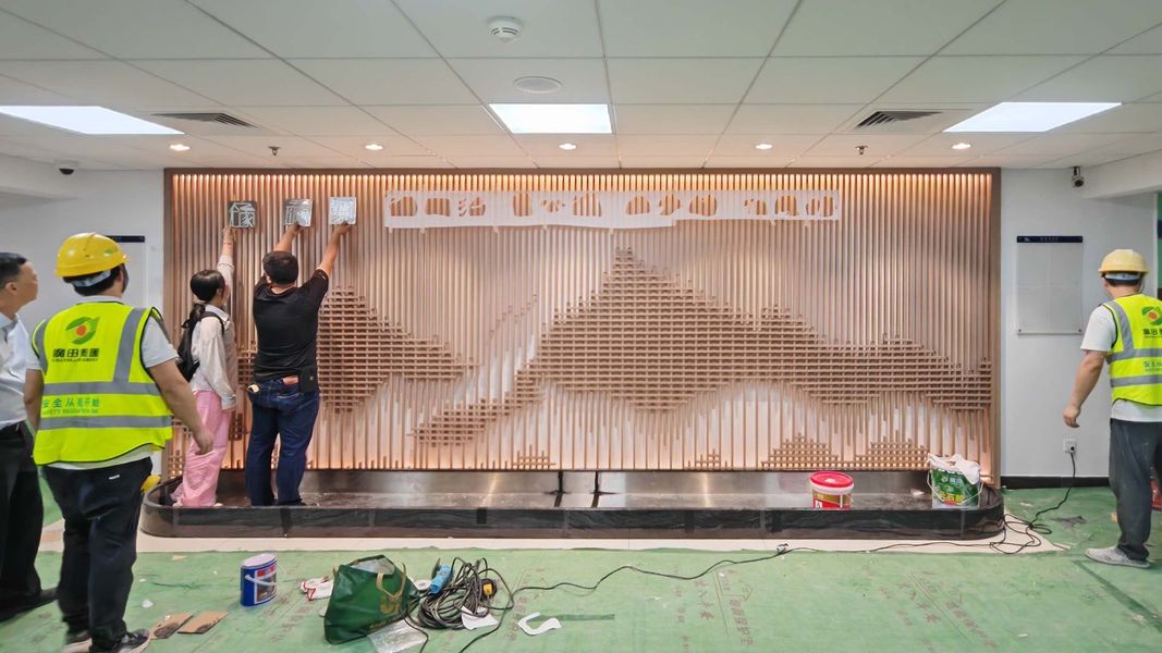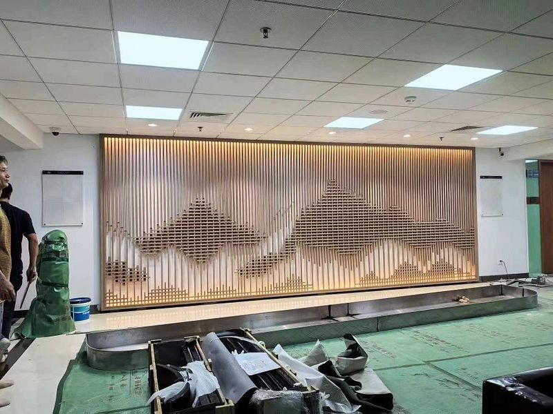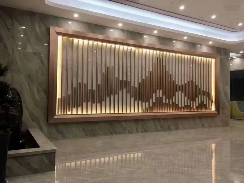 会所大堂不锈钢山形背景墙 不锈钢假山隔断安装效果