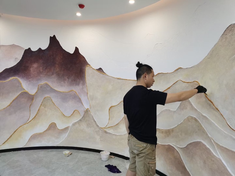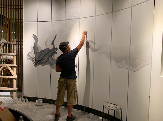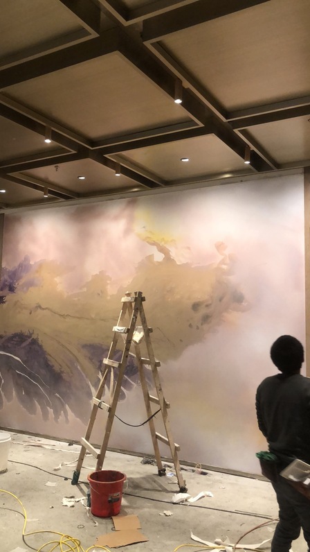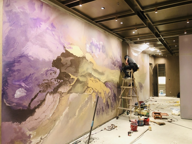 定制类流体画—酒店大厅定制类流体画彩绘施工
