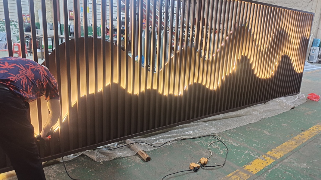 不锈钢发光山峦屏风,艺术不锈钢山形景墙实力圈粉
