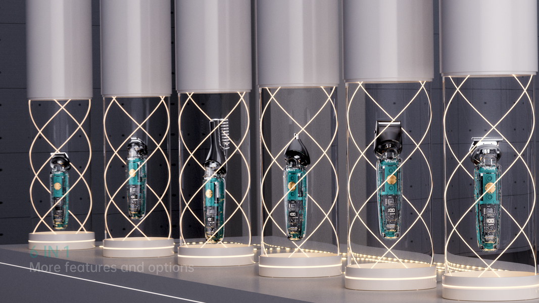 6合1多功能防水透明壳理发电推刀三维产品动画