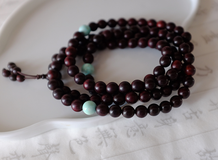 青舍 印度小叶紫檀手串 108颗佛珠 原矿绿松松石手链