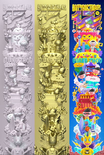FANXIN-站酷十三周年生日贺图-猪猪四城联动
