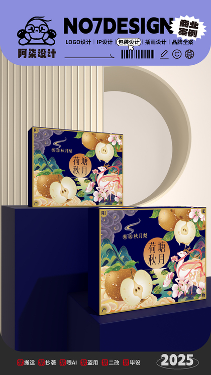 水果包装 国潮插画 秋月梨 梨包装 梨礼盒