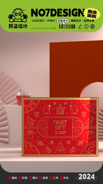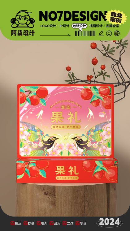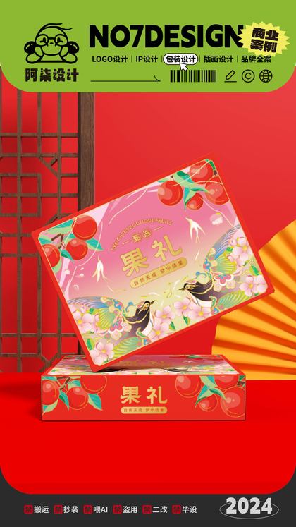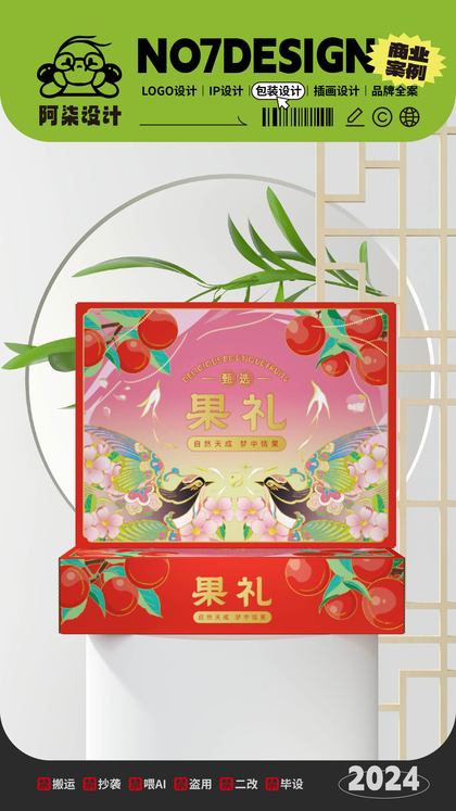 水果包装 水果礼盒 通用水果礼盒国潮风插画包装设计