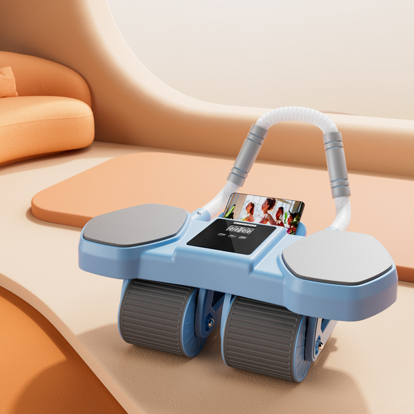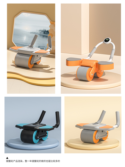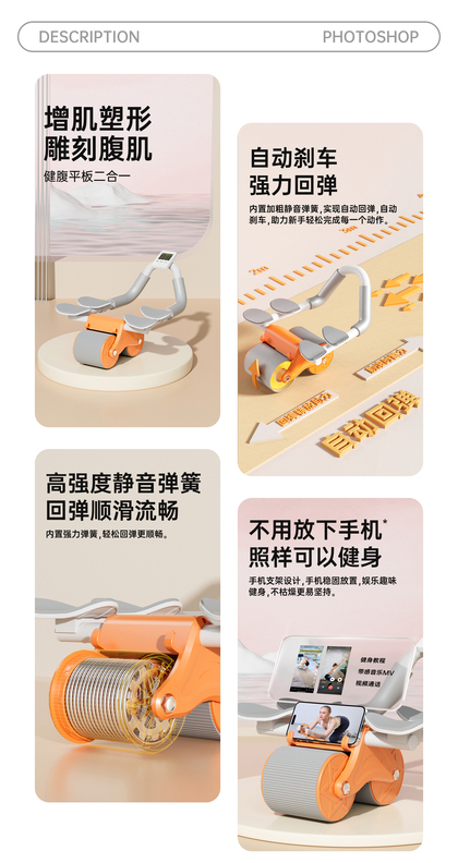 浅色系健身器材跳绳拉力绳健腹轮渲染详情页