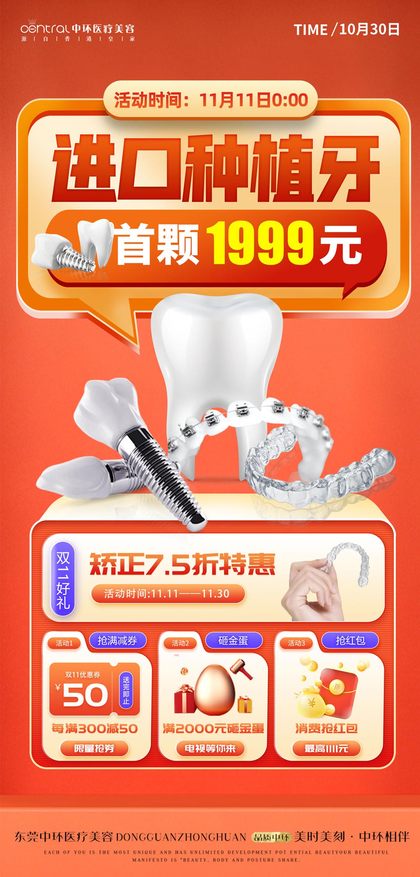 口腔医疗双十一种植牙活动物料设计