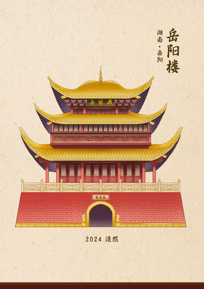 城市建筑商业插画海报文创插画黄鹤楼滕王阁岳阳楼