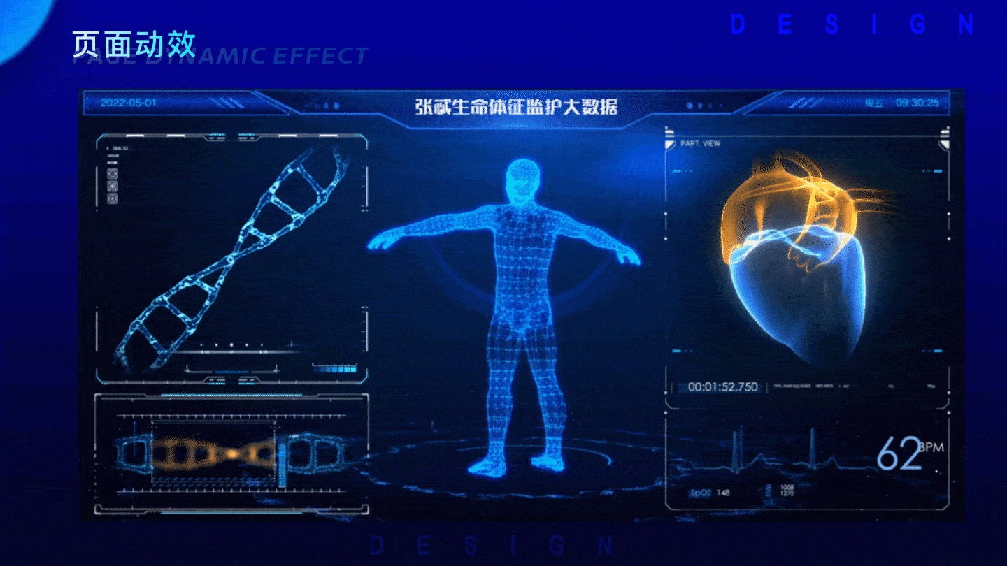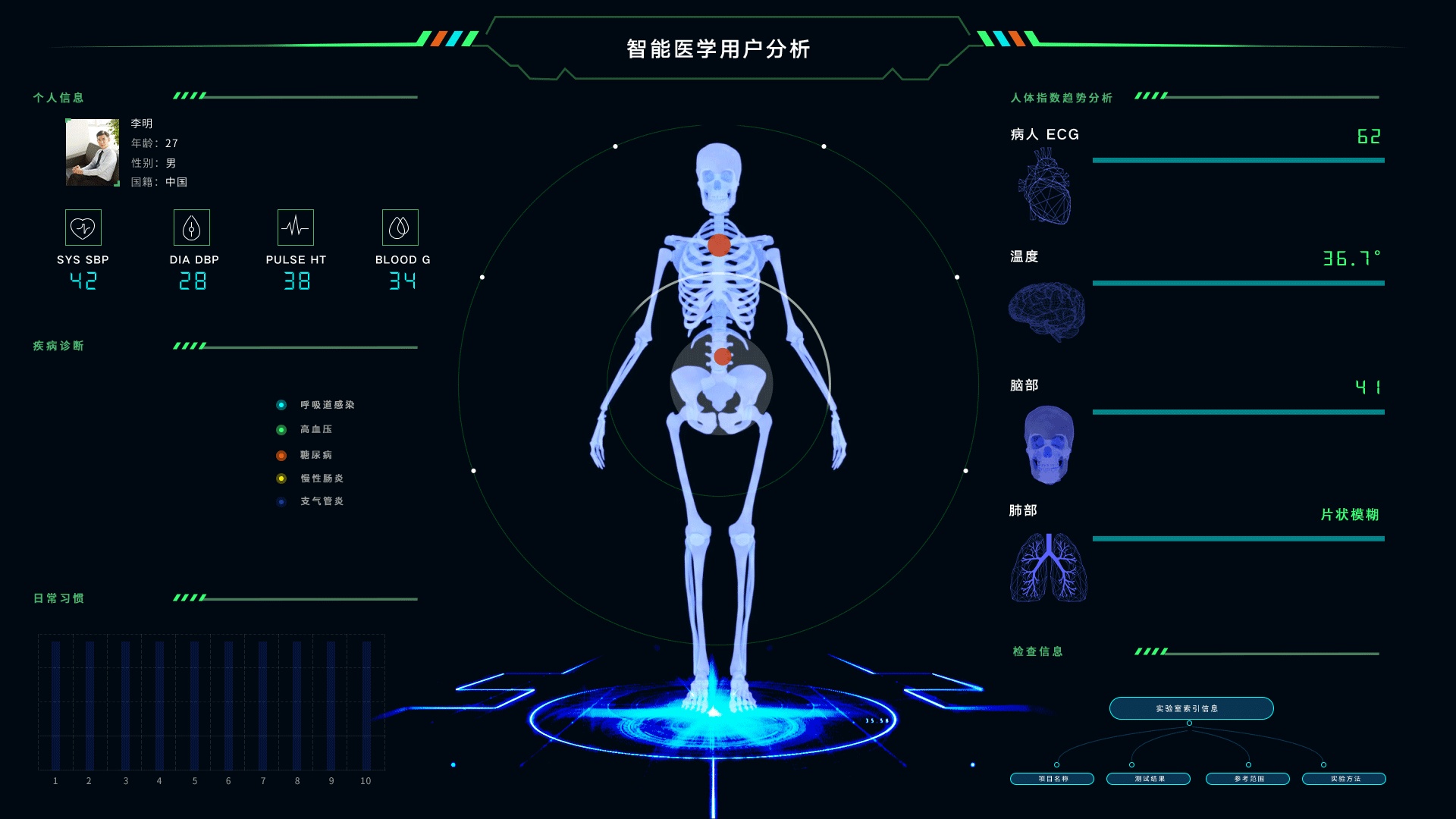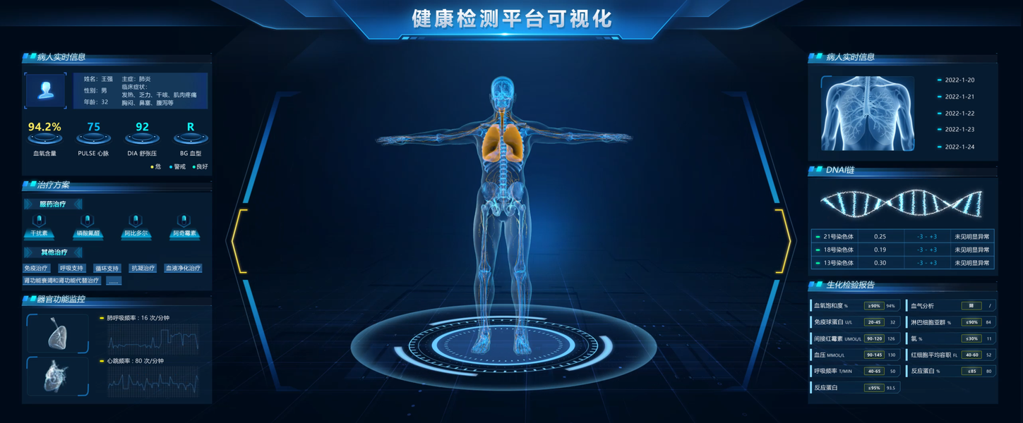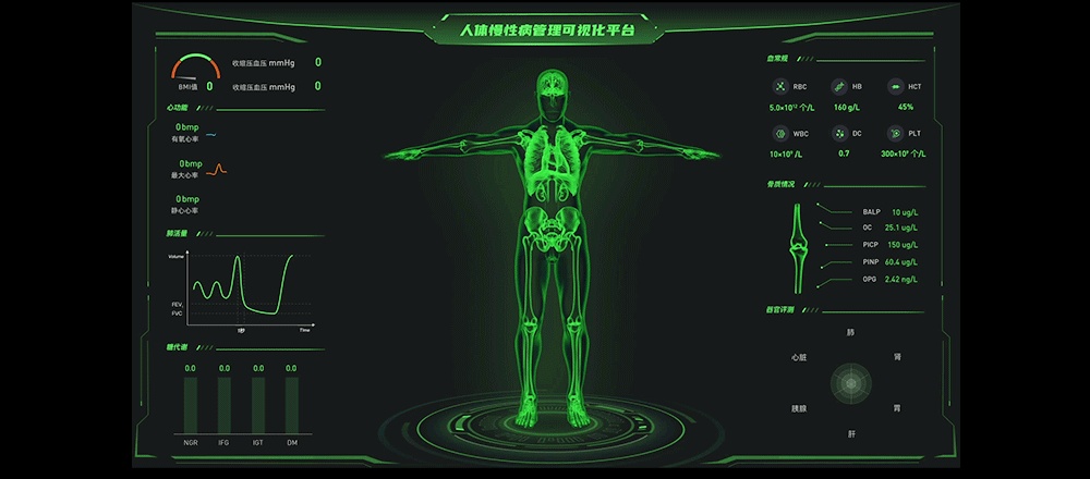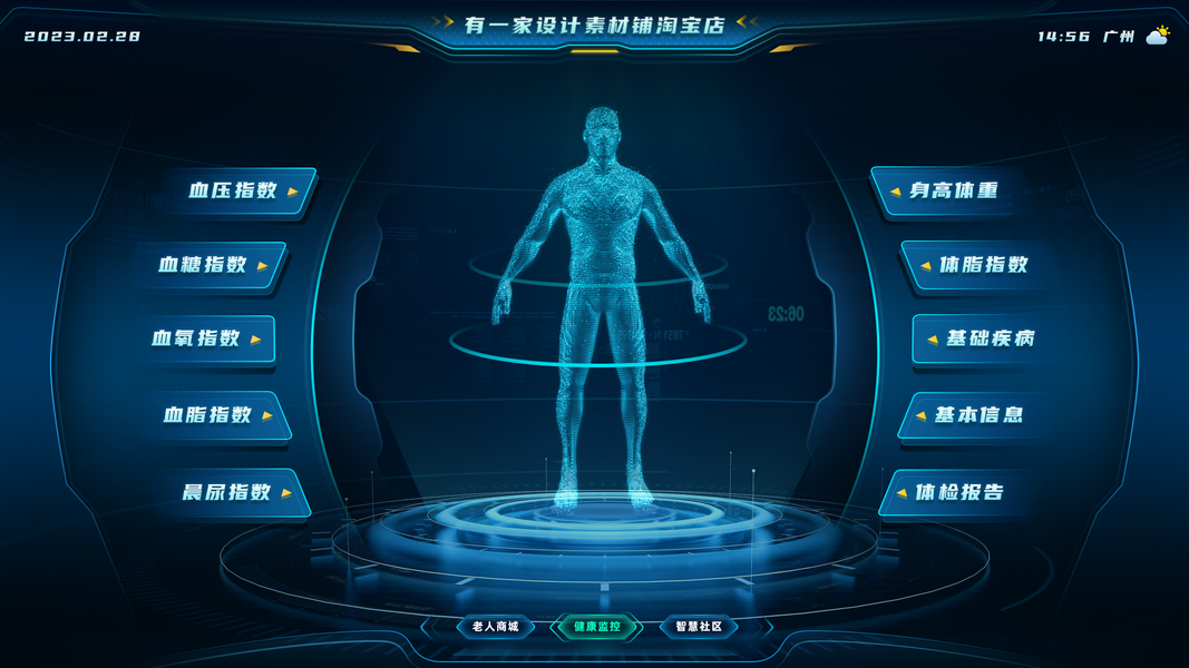 智慧养老大屏医疗健康人体监测数据可视化大屏PSD模板
