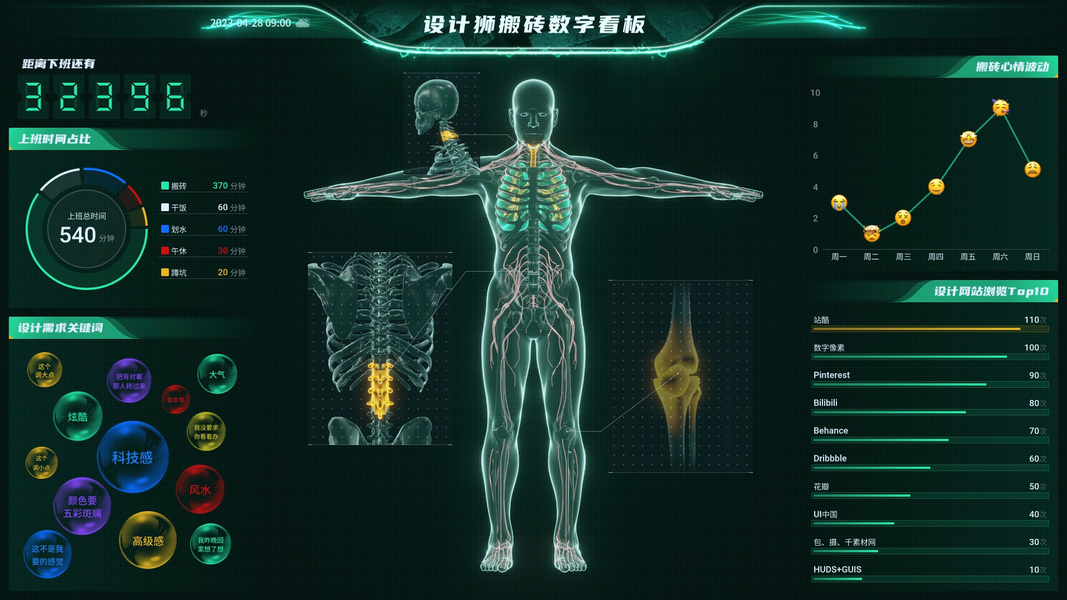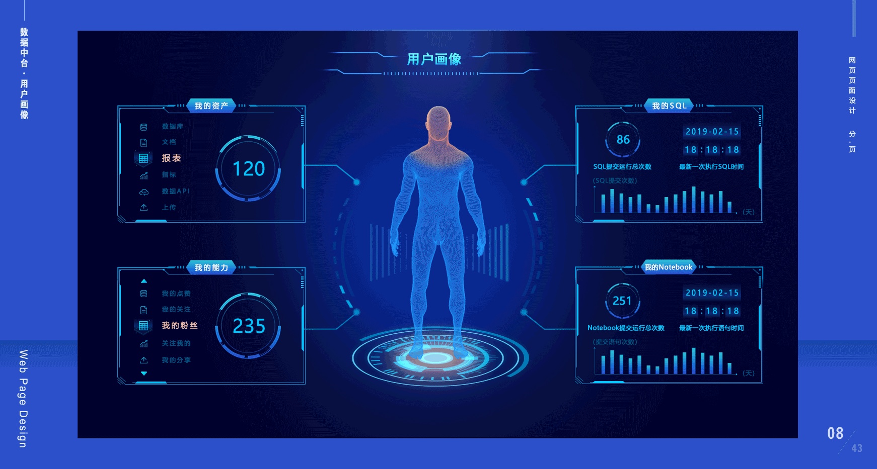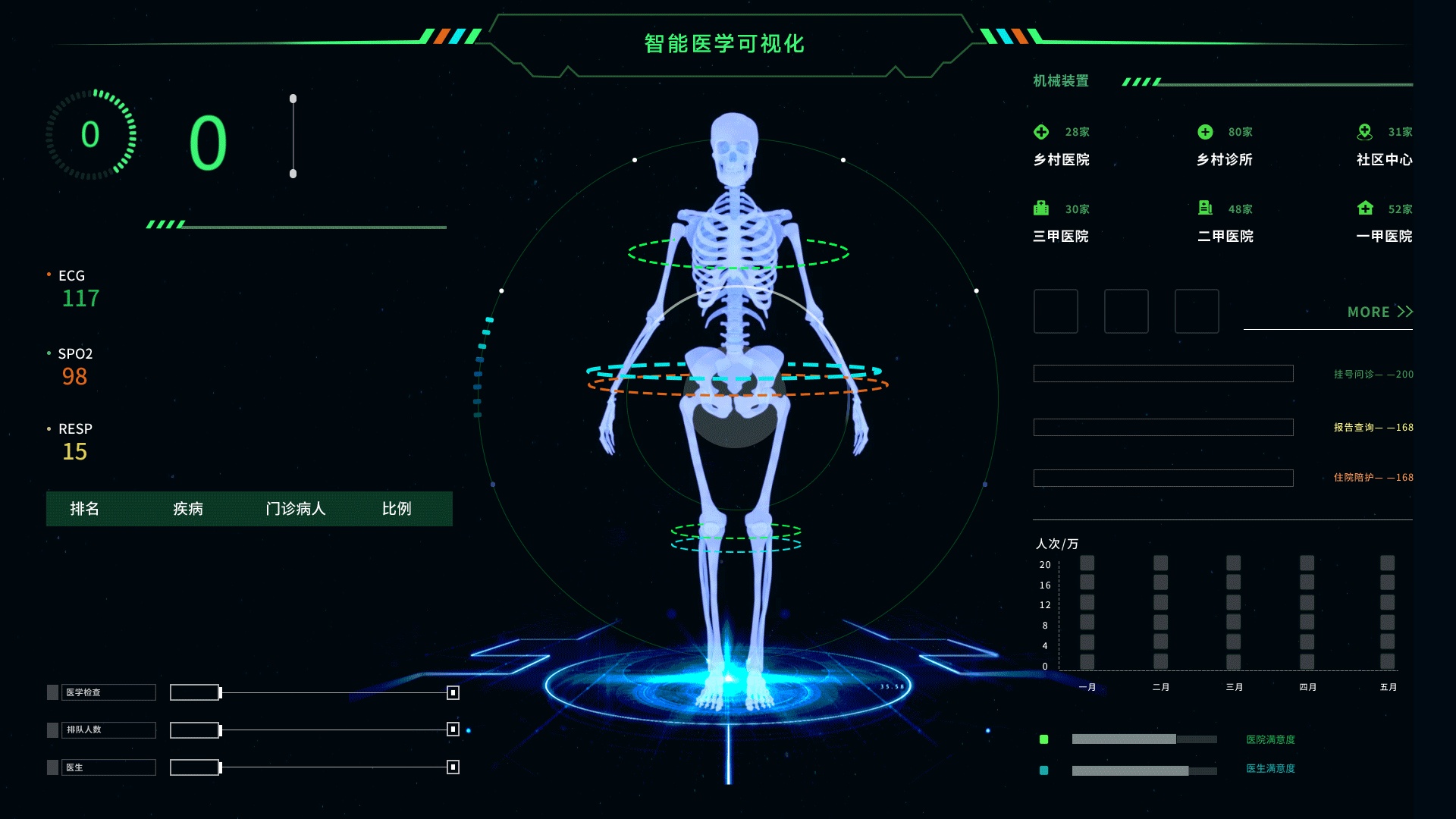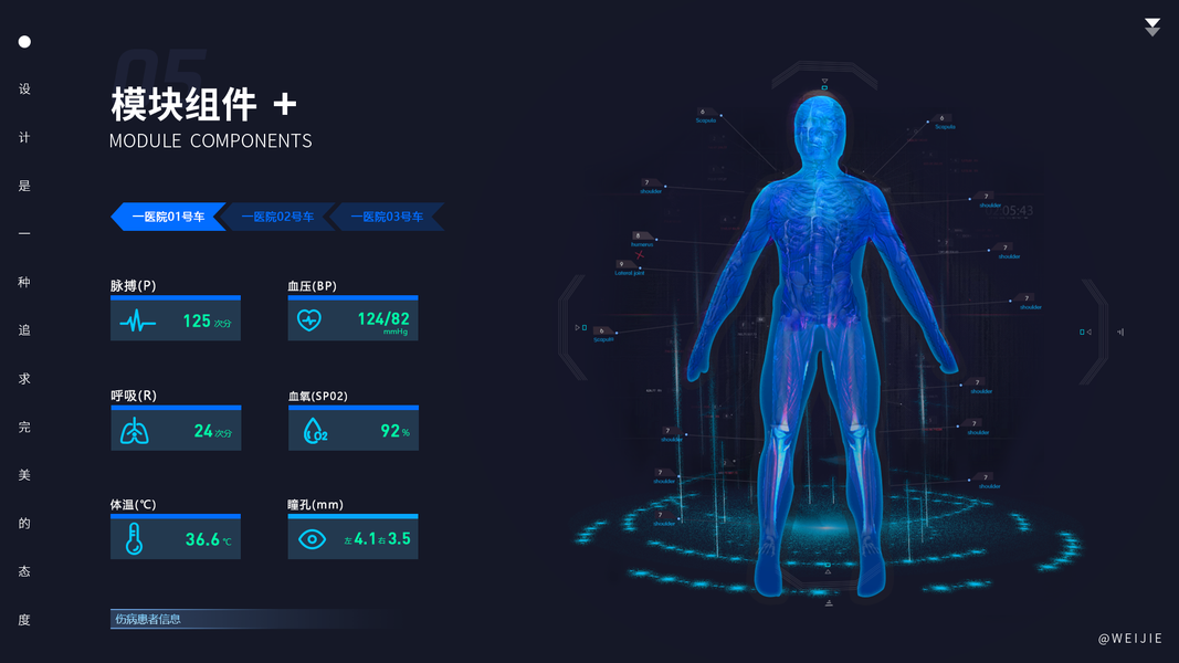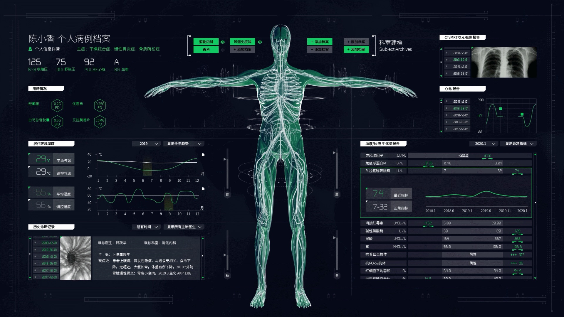 智慧养老大屏医疗健康人体监测数据可视化大屏PSD模板
