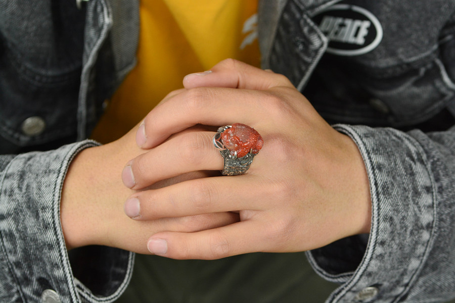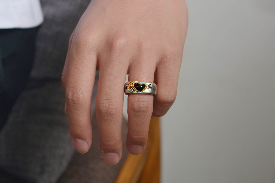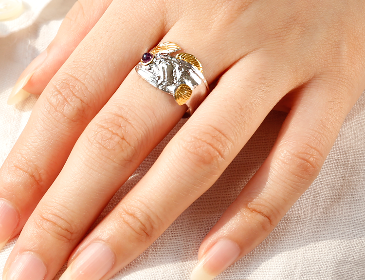 骸首饰设计师原创宽龙鱼戒手工天然宝石纯银镀k金情侣指环礼物