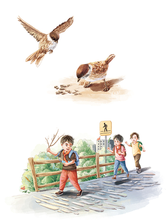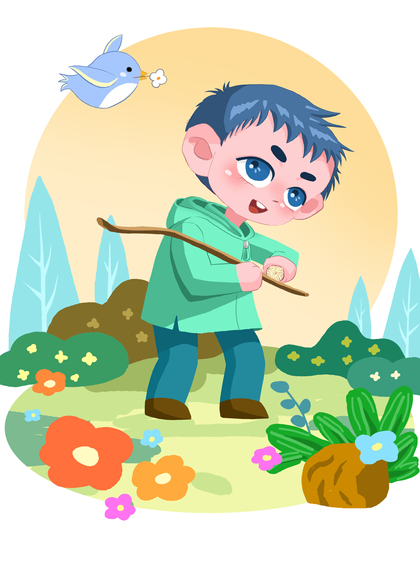 分级阅读低幼读物快乐读书吧歪脑袋木头桩扁平插画